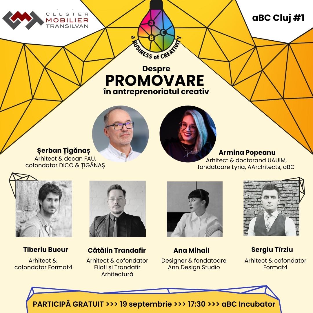 Tema primei întâlniri aBC din cluj este PROMOVAREA – Cum mă promovez ca arhitect, designer și antreprenor creativ? Temă pe care o vom dezbate marți, 19 septembrie 2023, de la ora 17:30 la ABC incubator - Str. Constantin Brâncuși 55-59, Cluj-Napoca, cu invitați: