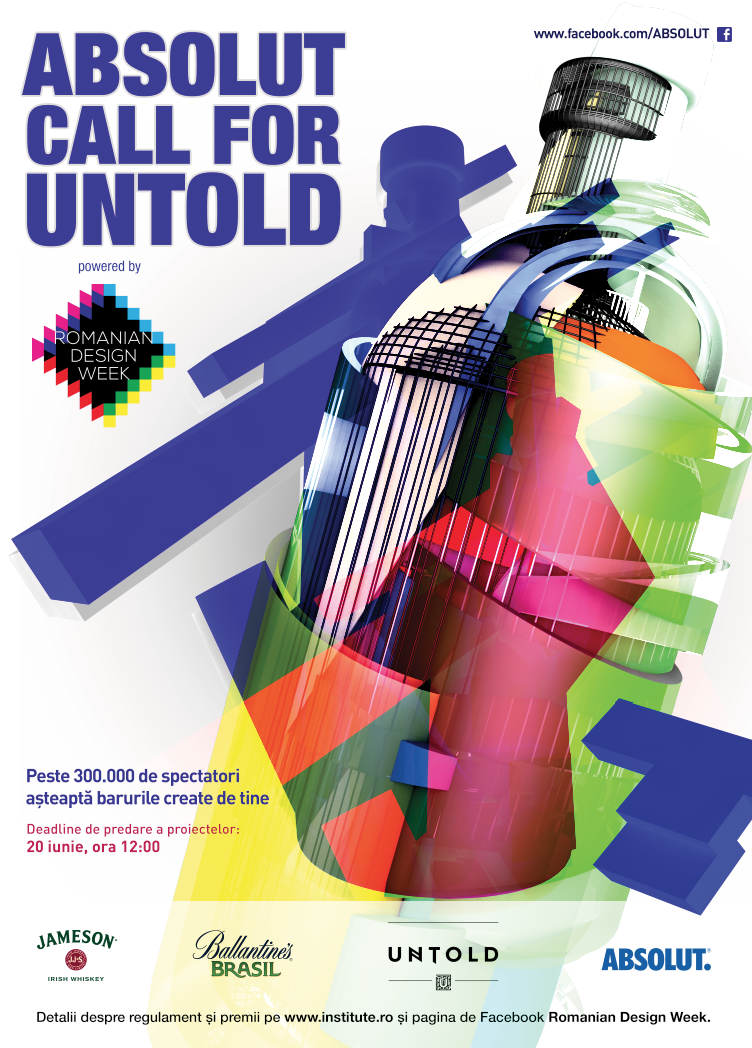 Partener Romanian Design Week, ABSOLUT lansează o competiție pentru set-up-ul de baruri Absolut Vodka / Jameson / Ballantine's Brasil de la UNTOLD 2016.