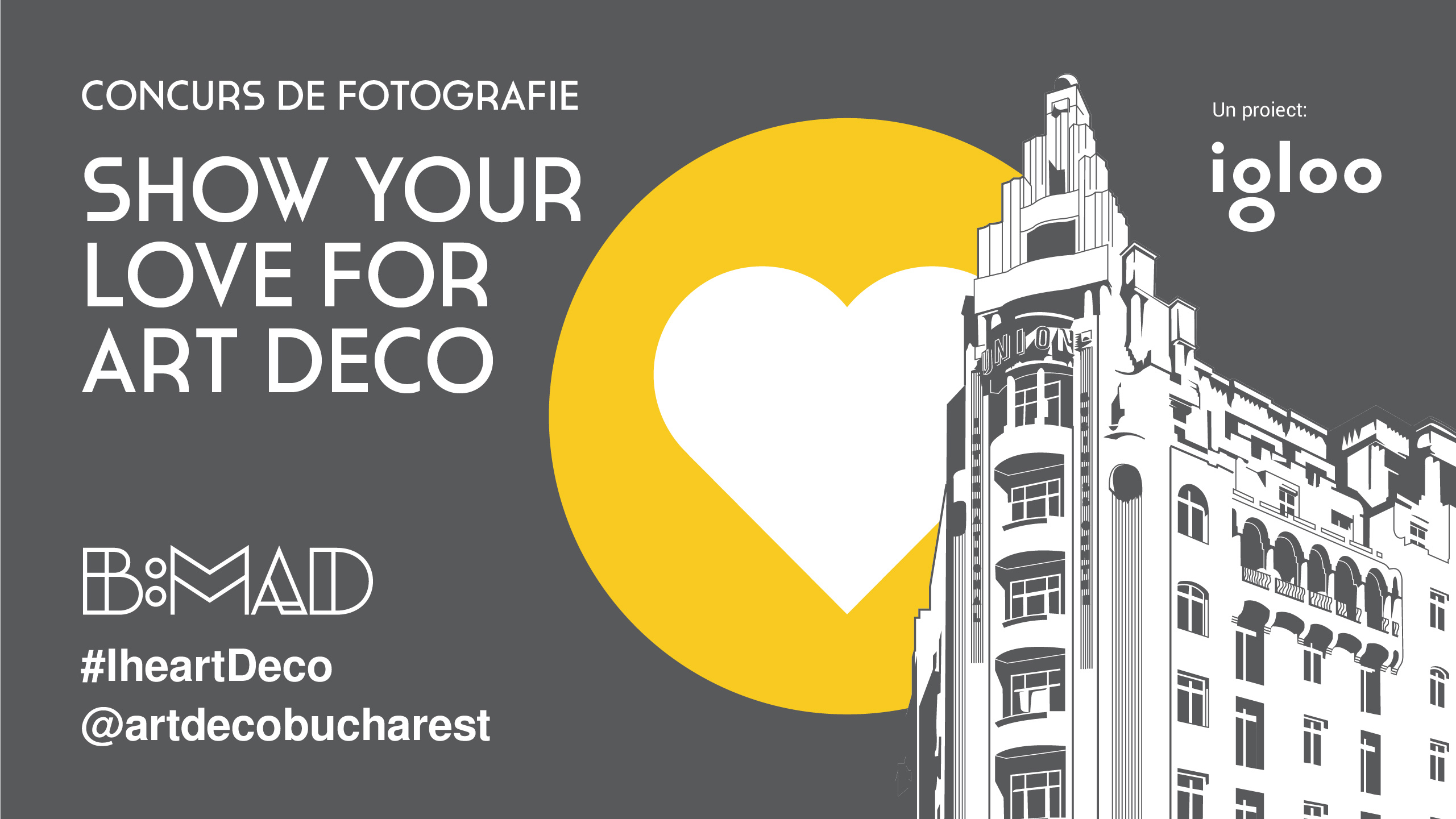 Cu ocazia lunii internaţionale Art Deco ICADS şi în anticiparea World Art Deco Day – 28 Aprilie 2021, în perioada 14-28 aprilie igloo media şi Bucharest: Modernism Art Deco relansează invitaţia la concursul #IheartDeco, desfășurat pe Instagram.