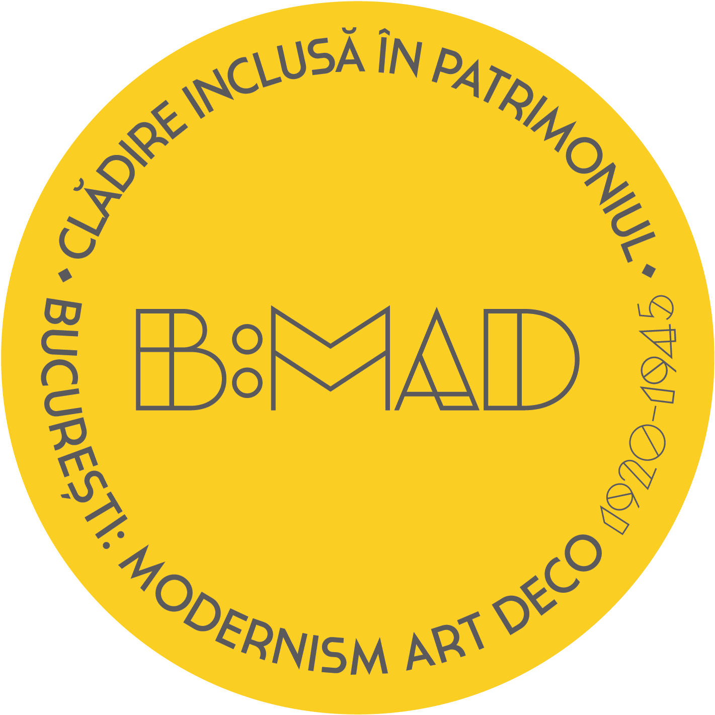 Expoziția de fotografie B:MAD propune o incursiune vizuală inedită în dimensiunea amplă, mai puțin cunoscută și nepopularizată, a patrimoniului deco-modernist din București. Bulina galbenă B:MAD „Clădiri incluse în patrimoniul București: Modernism Art Deco” – elementul vizual recurent al proiectului – indică valoarea acestor clădiri și atrage atenția asupra necesității de a le conserva și de a le percepe drept spații vii ale orașului.