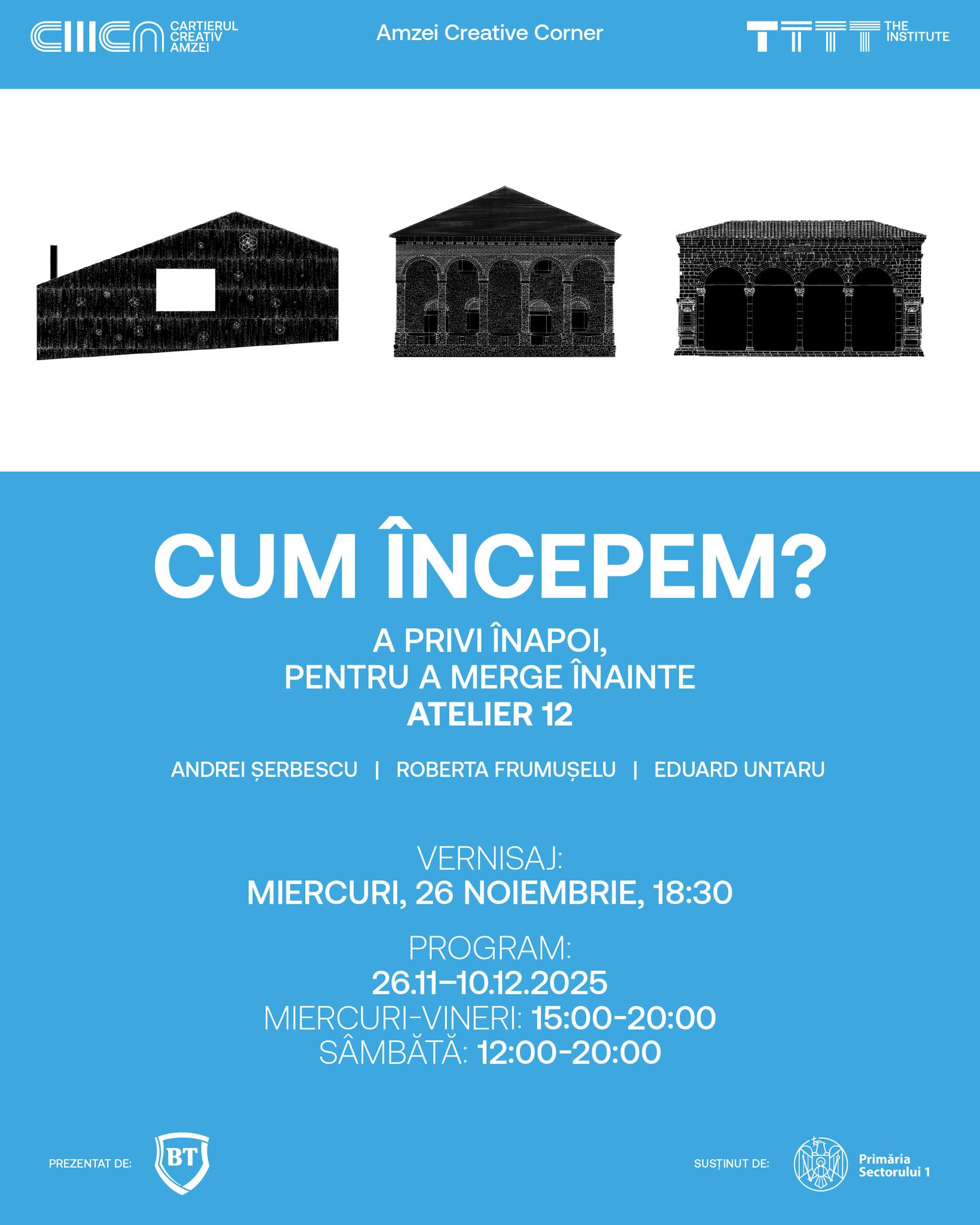 The Institute, prin Cartierul Creativ și Atelier 12, invită publicul la vernisajul expoziției CUM ÎNCEPEM? A privi înapoi, pentru a merge înainte care va avea loc miercuri, 26 noiembrie, de la ora 18:30, la Amzei Creative Corner.
