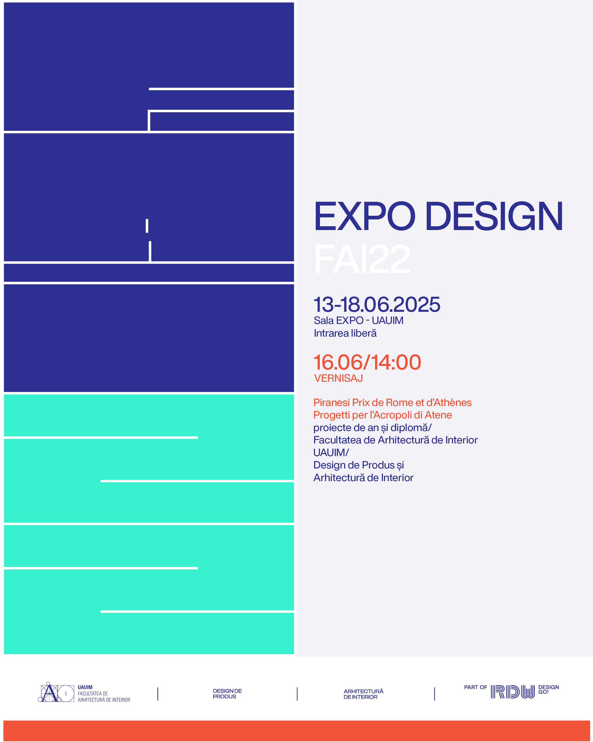 Expoziția „FAI 22” își propune să prezinte cele mai reușite proiecte realizate de-a lungul anului universitar de studenții secțiilor Arhitectură de Interior și Design de Produs din cadrul Facultății de Arhitectură de Interior – UAUIM. Evenimentul valorifică învățarea prin experiment și pune accent pe procesul formativ complex care stă la baza acestor lucrări.