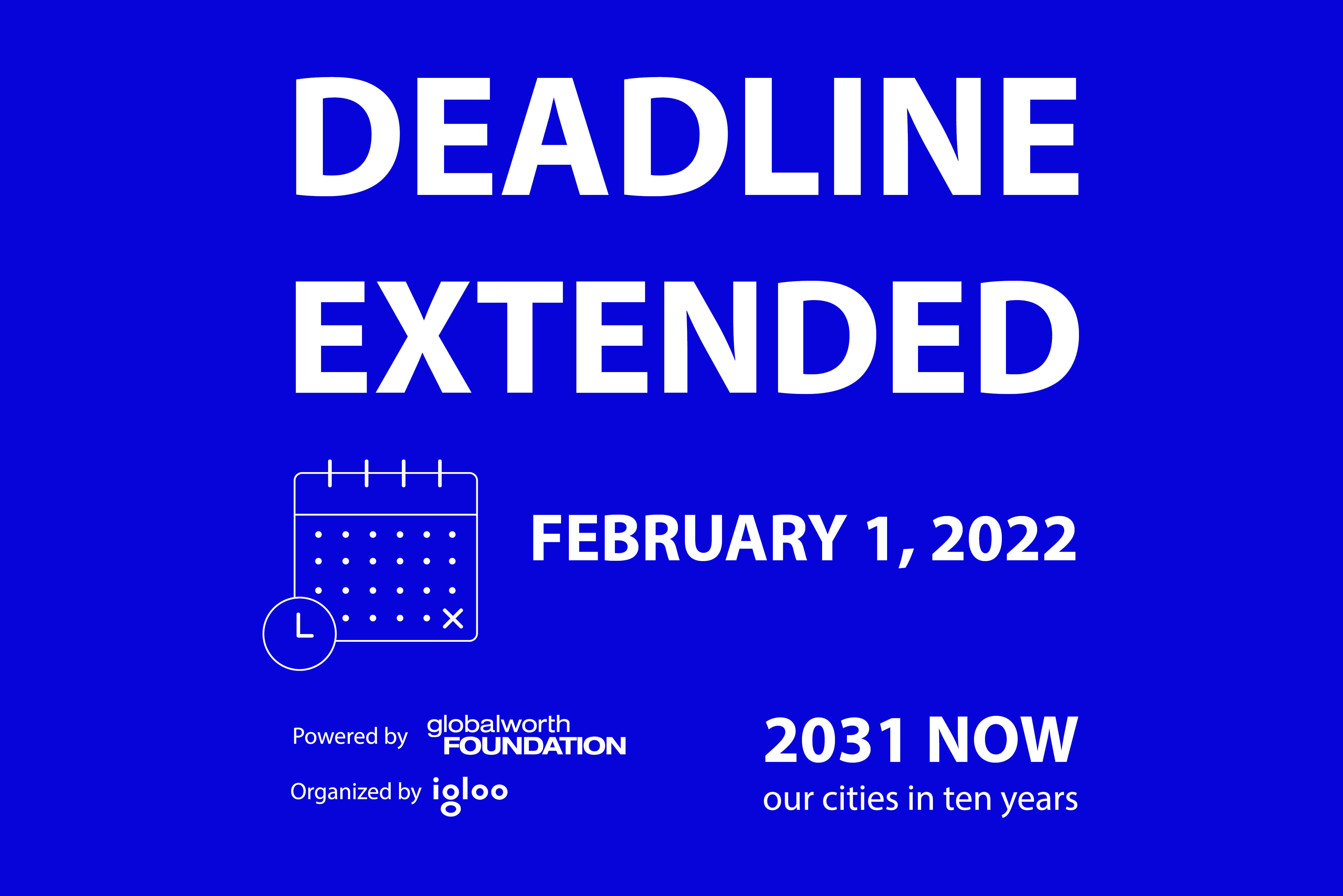 Fundația Globalworth și Asociația Igloo – Habitat și Arhitectură anunță prelungirea perioadei de înscriere a proiectelor în competiția internațională pentru studenți 2031 NOW_our cities in 10 years, ca urmare a solicitărilor primite de la participanți și a complexității temei de concurs.