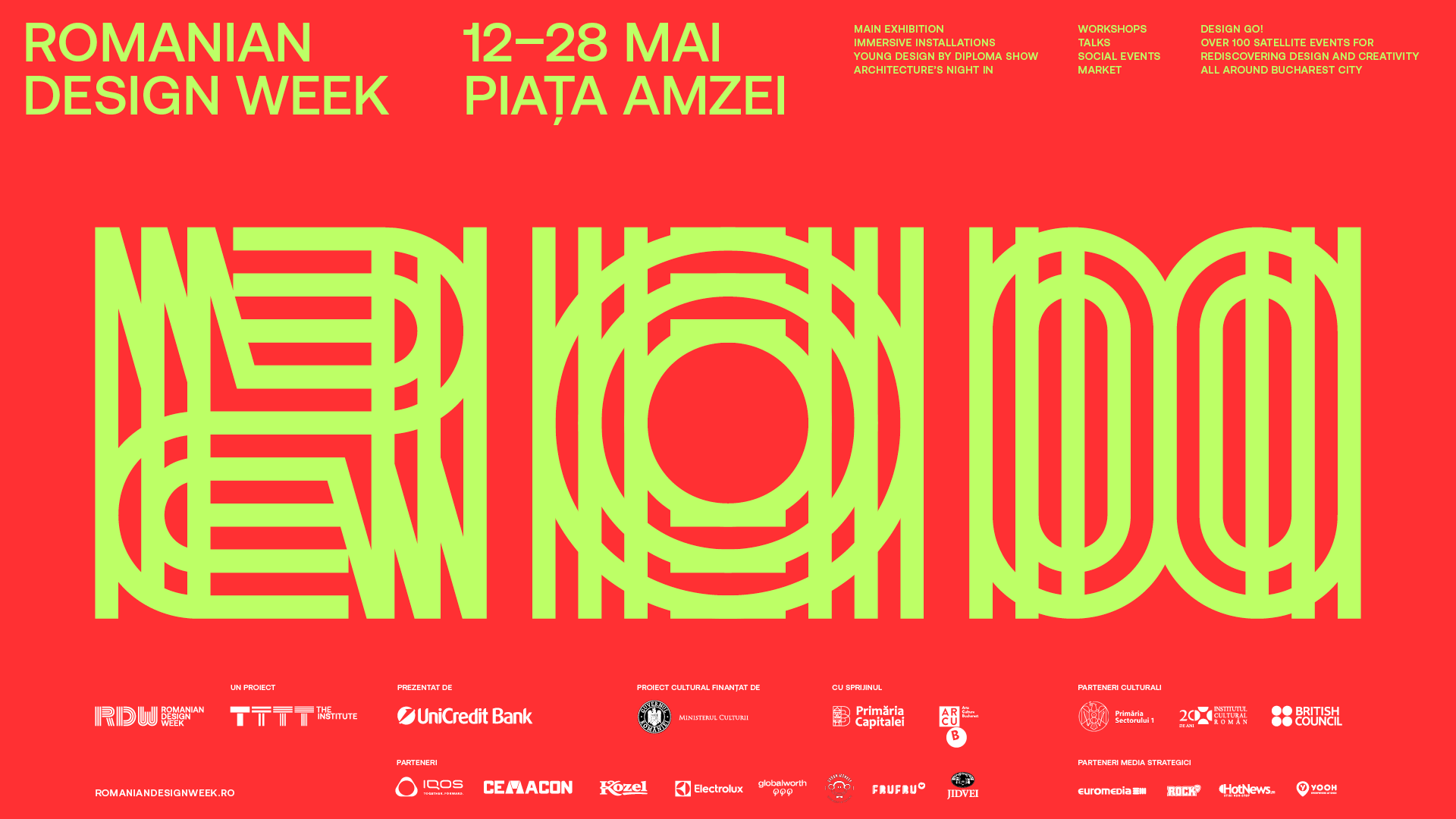 Parteneri media: Radio România Cultural, Igloo, Revista Zeppelin, Arhitext, Designist, Molecule F, Modernism, Lovedeco, B365.ro, aiciastat.ro, feeder.ro, munteanurecomandă.ro, Revista Atelierul, IQAds, Zile și Nopți, Glamour, The Woman, Inspirationist, Contemporary Lynx, World Architecture Community