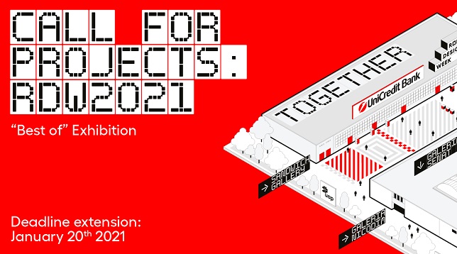 Am prelungit call-ul de proiecte, așa că cei dornici să participe în cadrul expoziției Romanian Design Week 2021 BEST OF se pot înscrie până pe 20 ianuarie. Cele mai bune proiecte de arhitectură, urbanism, design grafic, fashion, design de produs și multidisciplinar vor fi selectate de către Boardul Creativ RDW și vor fi expuse în cadrul unei expoziții ce își propune să urmărească efectele alăturării acestor bresle profesionale și abordări ale designului.
