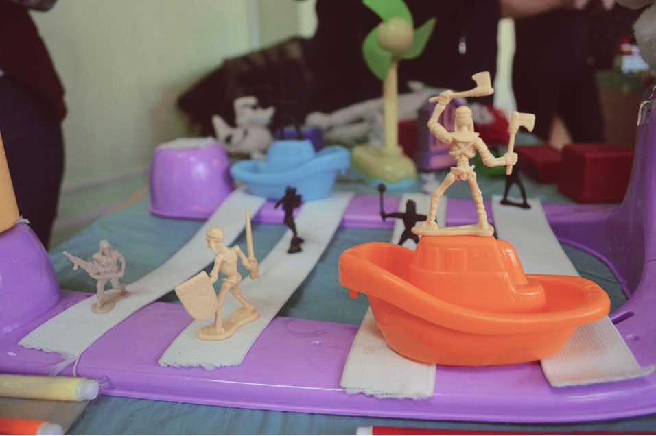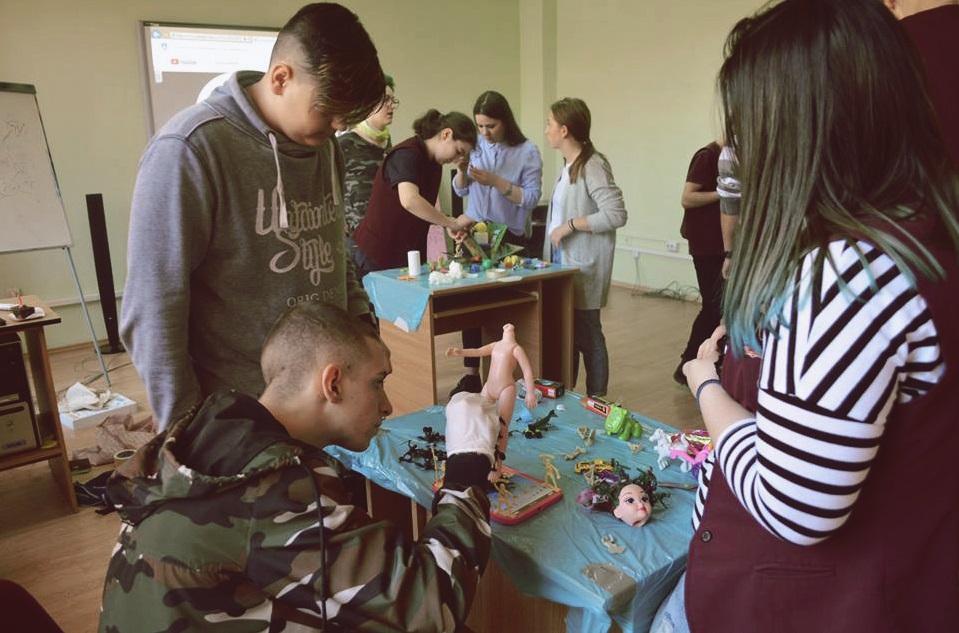 Proiectul se adresează clasei a XI-a E a Colegiului, o „clasa problemă” căreia, de obicei, nu i se propun activități extracurriculare sau olimpiade, ai cărei elevi înfruntă provocări sociale zilnice. Într-un atelier de instalație, Lea Rasovszky a lucrat cu elevii pornind de la tema distrugerii în război. S-au folosit jucării reciclate aduse de către elevi, iar tema a putut fi reinterpretată în funcție de direcția aleasă de fiecare echipă: inocența copiilor prinși în războaie, pierderea acestei inocențe, transformarea tuturor lucrurilor în timp de război, emigrarea în masă, haosul și distrugerea, eroismul indivizilor rămăși anonimi.