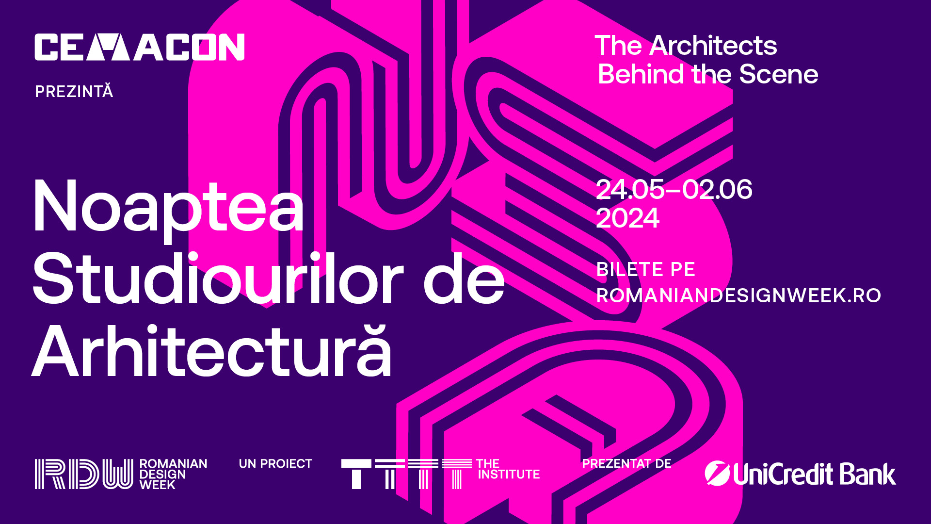 Noaptea Studiourilor de Arhitectură, format original al Romanian Design Week, propune o seară în care arhitecții își deschid birourile și spațiile de lucru. Evenimentul va avea loc pe 30 mai.