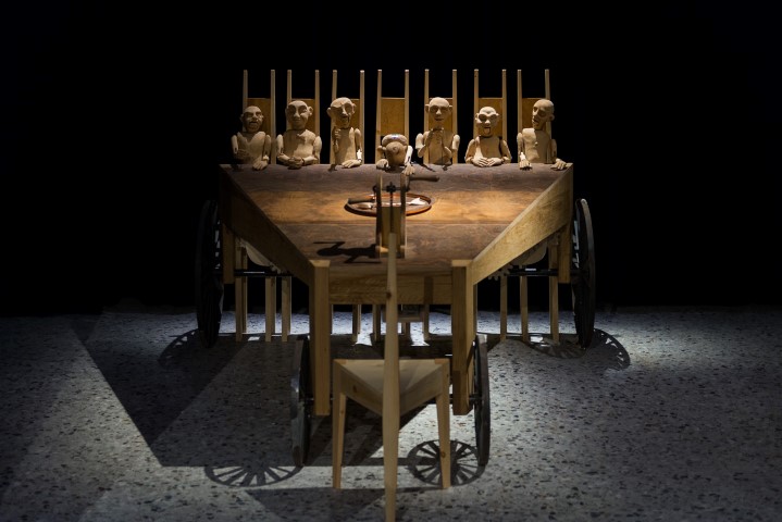 Corina Șuteu, Ministrul Culturii: “În 2016, un șir de păpuși de lemn, acționate cu resorturi, mimează construcția și deconstrucția comportamentelor noastre, a mișcărilor și a mecanicii anatomice a omului-marionetă. Ele devin simbolice pentru un univers animat, dar fără viață, condus de mișcări repetitive și însuflețit artificial. Suntem prinși în povestea mută a acestor mișcări și repetiții, suntem prinși într-un univers în care mecanica domină organicul, în care gestul nu mai reflectă decât eterna reîntoarcere și imposibilitatea transfigurării.