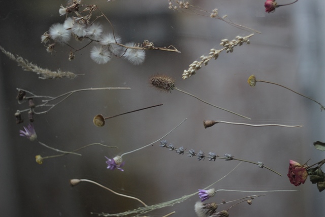 Eludând reflexia directă, prelungeşte momentul oglindirii printr-o sită intimă, compusă din propriile plante prestate, augmentată de suprafeţele reflectante ale coperţilor. Inversând ierarhia firească, extinde prezenţa naturii, revelând un ierbar de obicei ascuns printre file de carţi şi aşezând chipul printre flori. Obiectul este compus din două straturi de sticlă care ţin plantele presate şi două foi de metal care reflectă imaginea compusă.