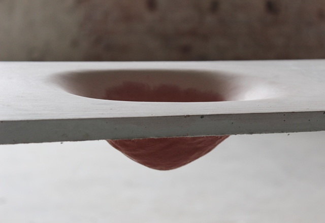 Ulterior, în ideea de a redefini/a defini un pic mai clar regulilie jocului, și după o primă experiență de lucru cu materialul și cu diferite matrițe, am redirecționat jocul într-o zonă care vorbește mai mult despre posibilitățile și ipostazele betonului, despre o față ascunsă, surprinzătoare sau cel puțin pentru noi așa a fost, o față tactilă, moale, delicată, care răstoarnă într-un fel toate preconcepțiile pe care noi le aveam în ceea ce privește materialitatea betonului. Am propus în această a doua serie de obiecte, trei module în care ne-am jucat cu un singur pigment și în care am propus trei accidente progresive cu forme mult mai blânde, organice, care invită într-un fel, să le atingi. Am turnat blaturile cu mâna, amestecând diferite straturi de ciment cu pigment și testând diferite matrițe în căutarea unei noi fețe a materialului, care să fie mult mai personală, mai aproape de om. Am căutat un tip de manufactură, nu neapărat ca o critică a producției de serie, cât din nevoia de a ne implica în fiecare obiect pe care îl producem. Cu această formulă, am participat la Dutch Design Week și am primit nenumărate sugestii de utilizare și reacții față de această nouă suprafață, observația recurentă fiind că betonul arată ca pielea (umană).