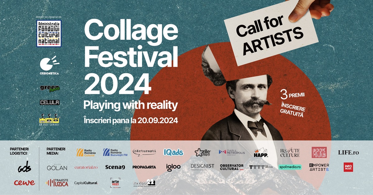 Creionetica, în parteneriat cu Celula de Artă, Să fiți cuminți și Asociația Green Hours au conceput un festival menit să promoveze arta colajului, care deși are mulți artiști reprezentanți în România, nu se bucură de atenția cuvenită. Între 25 și 27 octombrie la Green Hours, sub titlul Playing with reality, organizatorii propun un program ludic care subliniază eclectismul și flexibilitatea artei colajului, invitând totodată artiștii interesați să înscrie lucrări în festival. Termenul limită este 20 septembrie la ora 23:59, artiștii pot înscrie maximum cinci lucrări folosind formularul de pe site-ul www.collagefestival.ro, iar câștigătorii vor fi anunțați prin email pe data de 7 octombrie 2024. Lucrările selecționate de la 30 de artiști vor fi expuse timp de o lună, începând odată cu deschiderea festivalului, pe 25 octombrie, iar festivalul va promova artiștii respectivi și prin realizarea de portofolii digitale găzduite pe platforma online. Primii trei artiști selecționați vor primi și premii în bani.