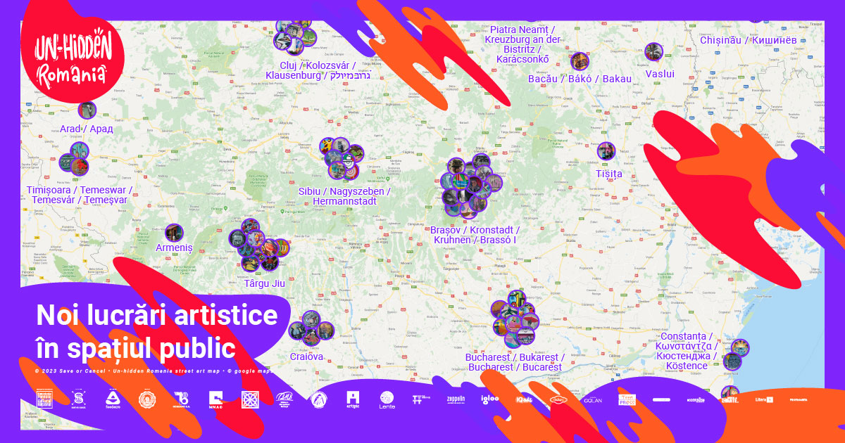 Descoperă noi lucrări artistice stradale și orașele adăugate recent pe harta Un-hidden Romania. Această hartă digitală indexează lucrările de street art, urban art, mural art, paste up, stencil sau stickers și invită locuitori și turiștii deopotrivă să exploreze orașele prin intermediul artei expuse în spațiul public.