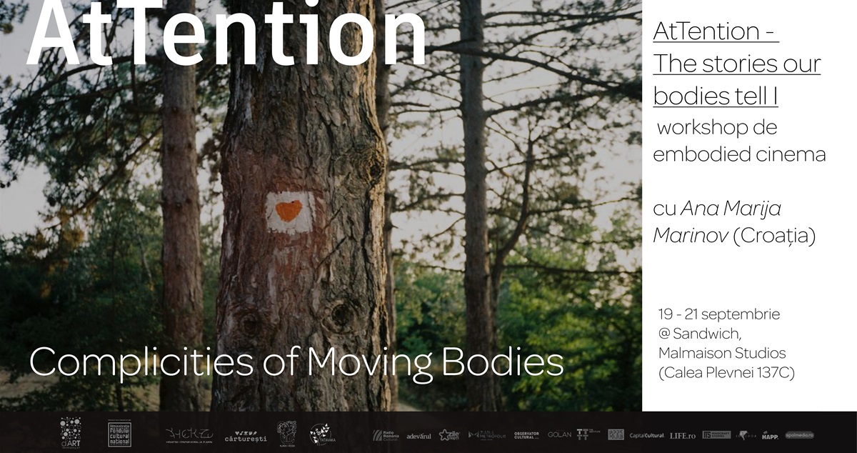Cel de-al doilea atelier din cadrul proiectului AtTention este The Stories Our Bodies Tell, condus de artista croata Ana Marija Marinov, gazduit tot de spatiul Sandwich, intre 19 si 21 septembrie, incepand de la orele 18:15 in primele doua zile, respectiv 16:00 in cea de-a treia zi, astfel incat doritorii sa poata participa la ambele workshop-uri. Acest atelier invita la o investigare a mesajelor pe care le transmite corpul, eliberate de filtrul constiintei si ratiunii. Este vorba de ascultarea si exprimarea povestilor pe care corpul trebuie sa le spuna, cele care nu mai pot astepta, cele care izbucnesc din celule, ducand uneori la senzatii inexplicabile si viscerale. Care sunt modurile in care corpul stocheaza astfel de povesti? Cum pot fi ele scoase in lume sau intr-o conversatie intima cu sinele, intr-un spatiu dat? O diferentiere clara intre multiplele roluri pe care le intrupeaza o persoana de la un moment la altul este aproape imposibil de urmarit, insa corpul pastreaza aceste experiente, povesti si subiecte intr-o memorie somatica. Acest atelier este o poarta inspre aceasta memorie. Doritorii se pot inscrie folosind acest formular. Tariful pentru intreg atelierul este de 100 de lei.