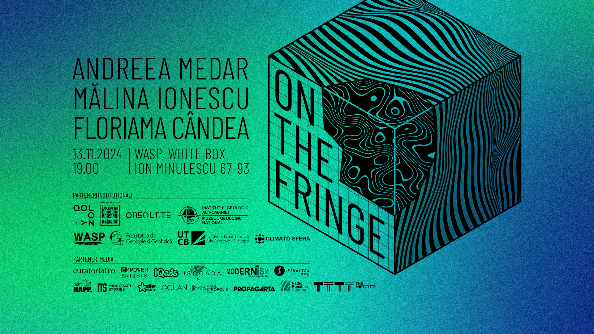 Într-un context cultural în care limitele dintre fapte și opinii sunt din ce în ce mai dificil de identificat, echipa artistică a proiectului „On The Fringe” cercetează zonele gri, punctele de confluență dintre știință și credințele oamenilor și fenomenele care apar în aceste spații mentale. De la amestecul insolit de informații științifice și credințe folclorice legate de scoici fosilizate, la misterele „efectului de piramidă”, Andreea Medar, Mălina Ionescu și Floriama Cândea navighează marginile dintre discipline, prezentând o serie de lucrări care expun fragilitatea pe care se sprijină înțelegerea umană a lumii. Vernisajul va avea loc pe data de 13 noiembrie, de la ora 19:00, urmat apoi de o masă rotundă cu artistele pe data de 14 noiembrie de la ora 18:00, ambele evenimente fiind găzduite în spațiul WASP - Working Art Space and Production (Strada Ion Minulescu nr. 67 - 93, Fabrica Flaros, corp E, et. 2, București).