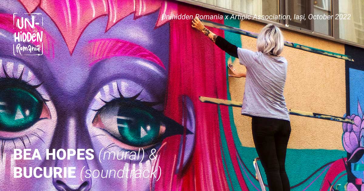 În continuarea celor două intervenții artistice realizate de Pisica Pătrată în Constanța și SANDi în Brașov, proiectul Un-hidden Romania se extinde în Iași. Cu susținerea Asociației Artipic, programul de regenerare urbană prin artă inaugurează o nouă lucrare multidisciplinară creată pentru spațiul public, realizată în coproducție de Bea Hopes (pictură murală) și Bucurie (compoziție audio).