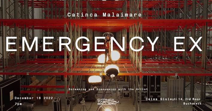 Proiecția filmului Emergency Ex va fi urmată de un dialog între artista Catinca Malaimare și galerista Catinca Tabacaru.