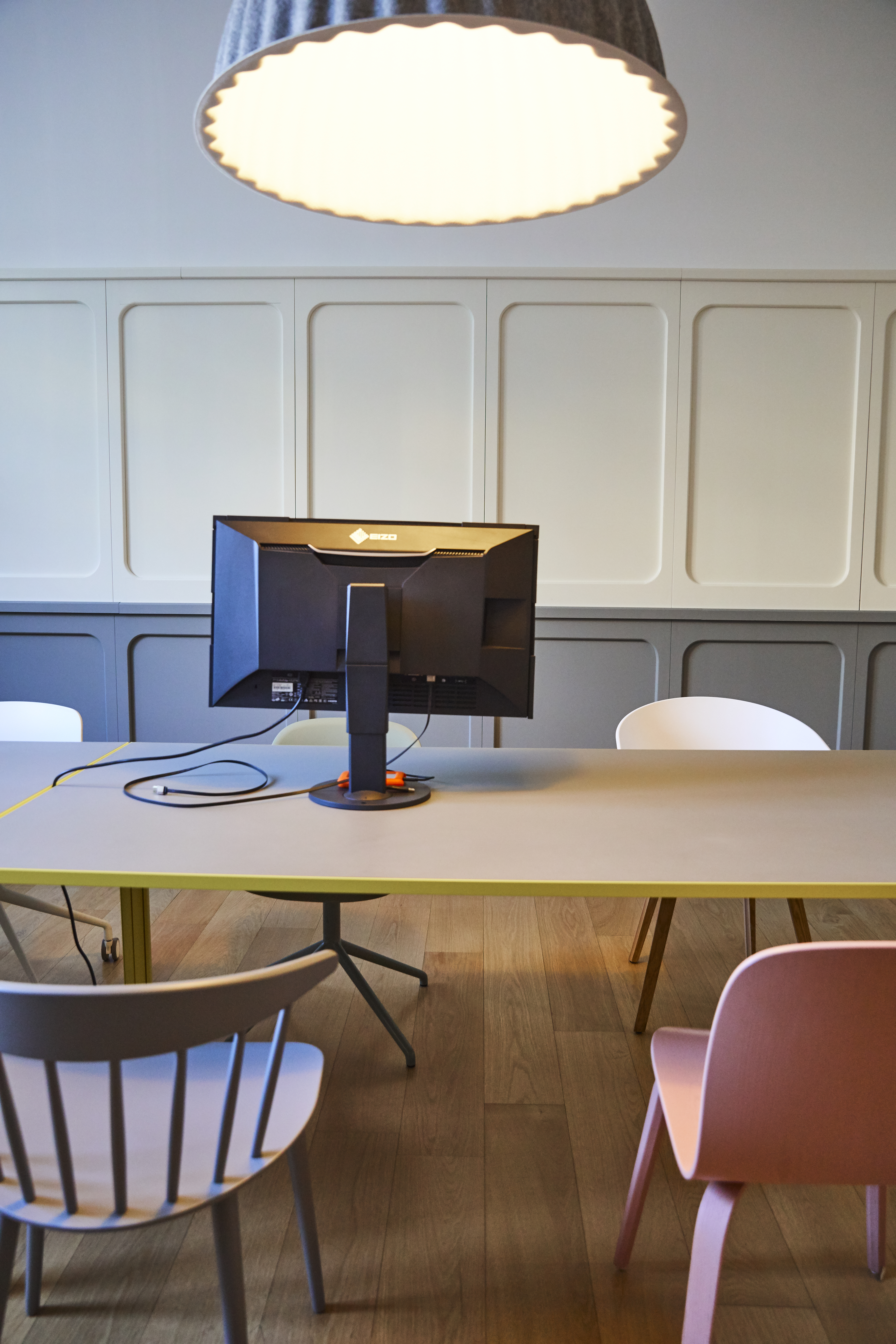 Într-o cromatică plăcută și pozitivă se combină nuanțe naturale de lemn ale pieselor de mobilier VITRA, HAY și Prostoria, integrate organic în spațiul luminos, deschis, cu accente moderne, construite pentru experiența celor care vin să își satisfacă ori depășească, deopotrivă, exigențele profesionale.