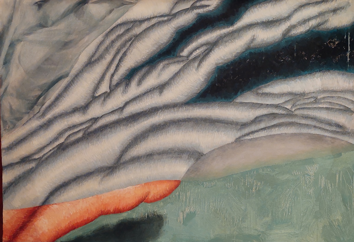 Imi asum caracterul grotesc, visceral al imaginilor deoarece nu trebuie sa ne ferim din a observa structurile din care suntem formati si procesele fiziologice prin care aceste structuri trec inevitabil. In lucrarile precedente am folosit oasele drept simbol pentru planul fizic, pentru limitarile formei umane. Cu toate acestea, imi finalizez proiectul de disertatie concentrandu-ma pe elemente acvatice. Cefalopodele sunt creaturi complexe, cu o inteligenta greu de inteles si cu un sistem nervos unic. Se fosilizeaza greu, nu au schelet sa il lase in urma pe planul material. Ele simbolizeaza subconstientul, dimensiunile necunoscute ale sufletului si mintii. Pictez deci despre o veche preocupare a umanitatii, anume incercarea de a transcende." - Andreea Ioana Trandafir