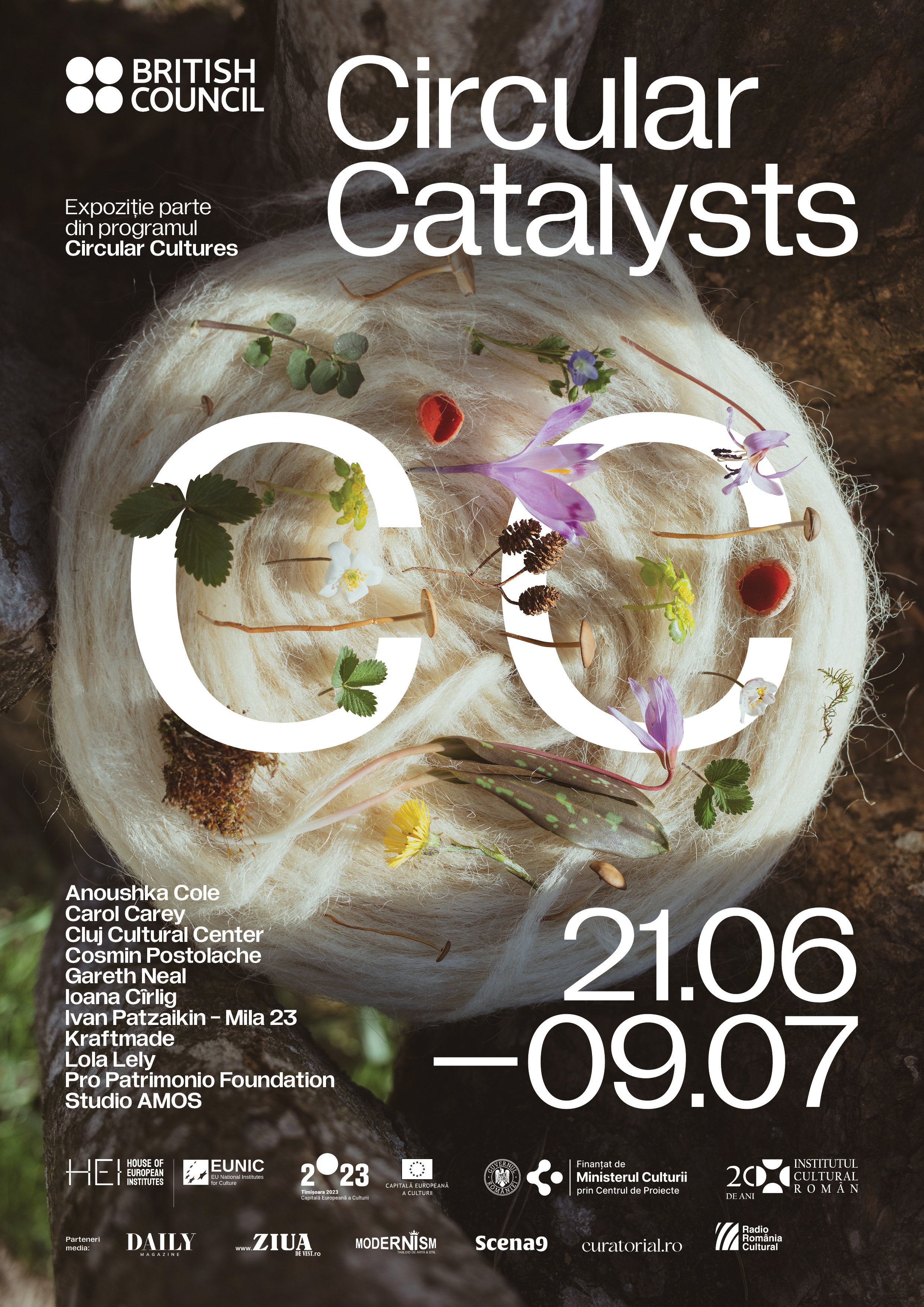 Expoziția Circular Catalysts, care prezintă rezultatele rezidențelor din cadrul programului omonim organizat de British Council România și Institutul Cultural Român, inaugurează centrul multicultural HEI – House of European Institutes, în cadrul programului cultural Timișoara 2023. Expoziția, care va fi vernisată pe 21 iunie 2023, poate fi vizitată până pe 9 iulie, de miercuri până duminică, la centrul HEI situat în Galeria 1 din Bastionul Maria Theresia (strada Hector) din Timișoara.