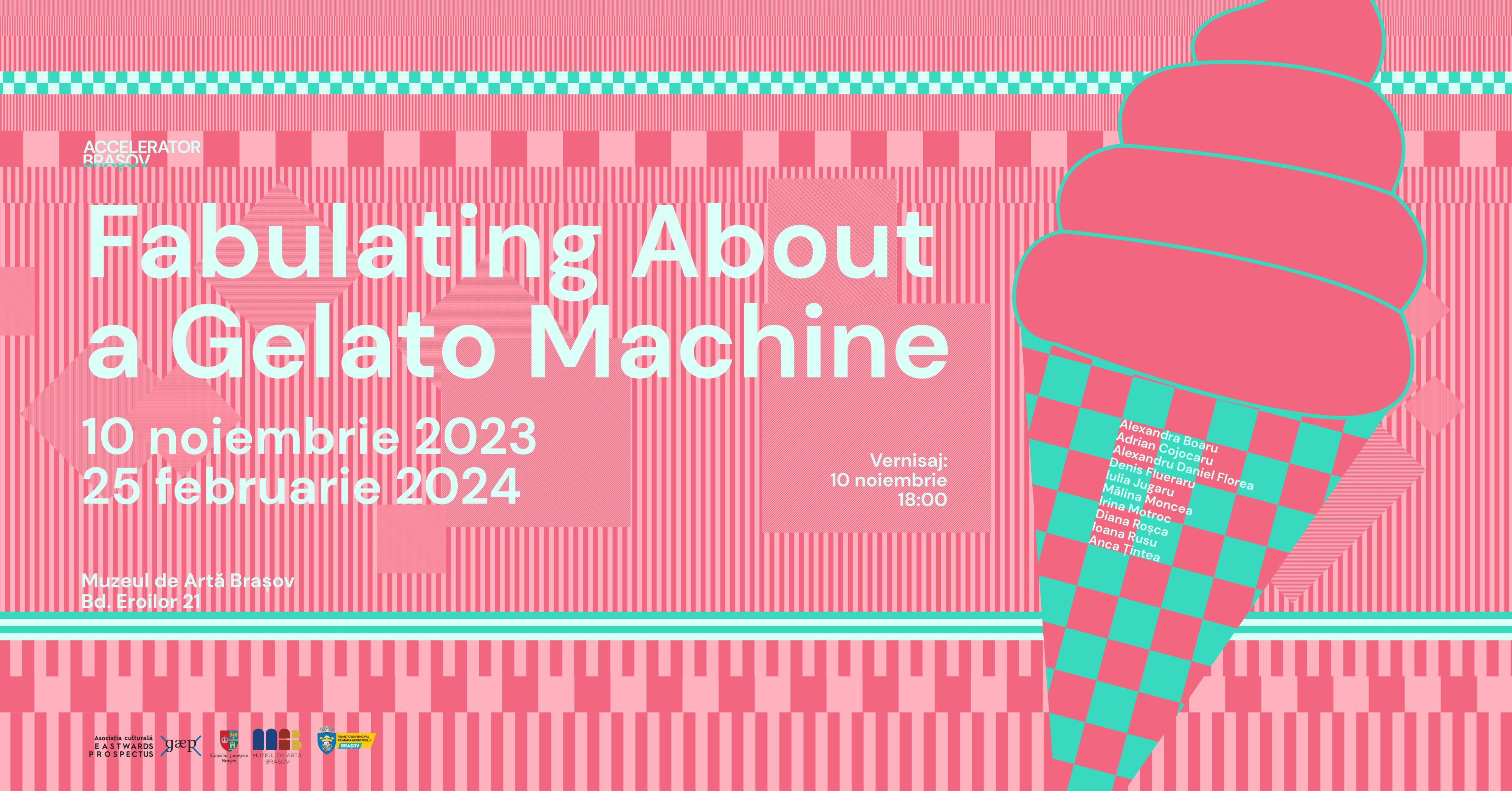 Asociația Culturală Eastwards Prospectus (ACEP) anunță vernisajul expoziției Fabulating About a Gelato Machine, ce are loc pe 10 noiembrie la Muzeul de Artă Brașov, Bulevardul Eroilor 21, între orele 18:00 și 21:00.