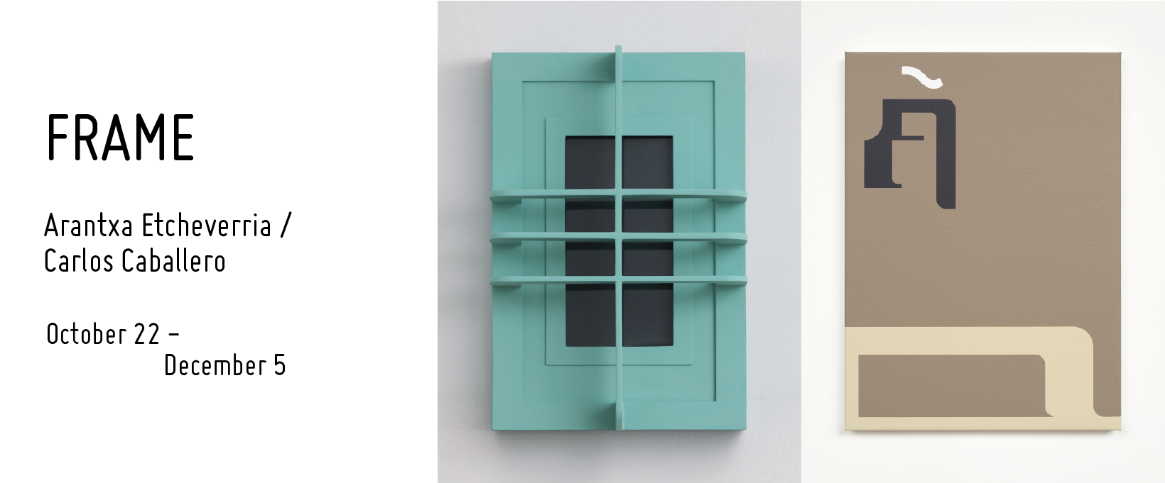 Galeria Sector 1 se întoarce la programul curatorial al anului 2020 cu expoziția Frame, a artiștilor Arantxa Etcheverria și Carlos Caballero, curatoriată de Domenico De Chirico. Vernisajul se va desfășura doar în prezența artistei Arantxa Etcheverria, artistul Carlos Caballero și curatorul Domenico De Chirico nefiind prezenți din motive cauzate de criza pandemică. Evenimentul va avea loc în data de 22 octombrie 2020, de la ora 17:00, până la ora 22:00, la Galeria Sector 1, în Strada Băiculești nr. 29, în cadrul Combinatului Fondului Plastic. Expoziția va putea fi vizitată în perioada 22 octombrie – 05 decembrie2020.
