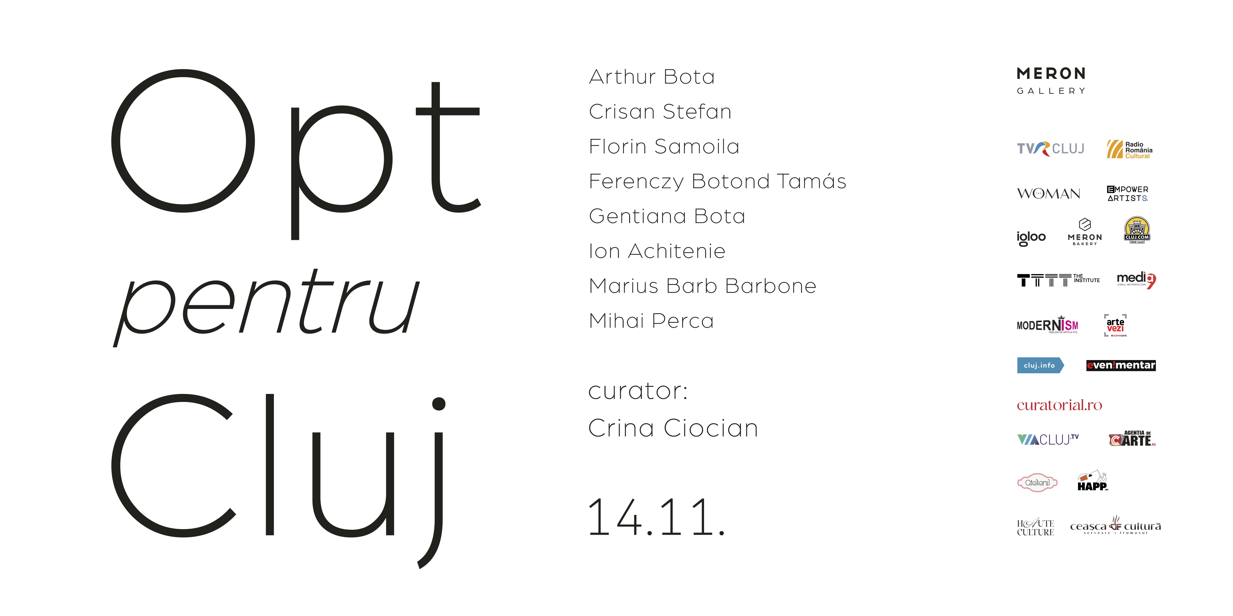 Parteneri media: THE WOMAN Magazine, Radio România Cluj, TVR Cultural, Curatorial, Empower Art & Artists, Modernism, Cluj.com, IGLOO, The Institute, Media9, Haute Culture, Revista Atelierului, Via Cluj TV, Agentia de cArte, Happening.ro, Evenimentar, Ceașca de Cultură, Cluj Info, ArTeVezi.