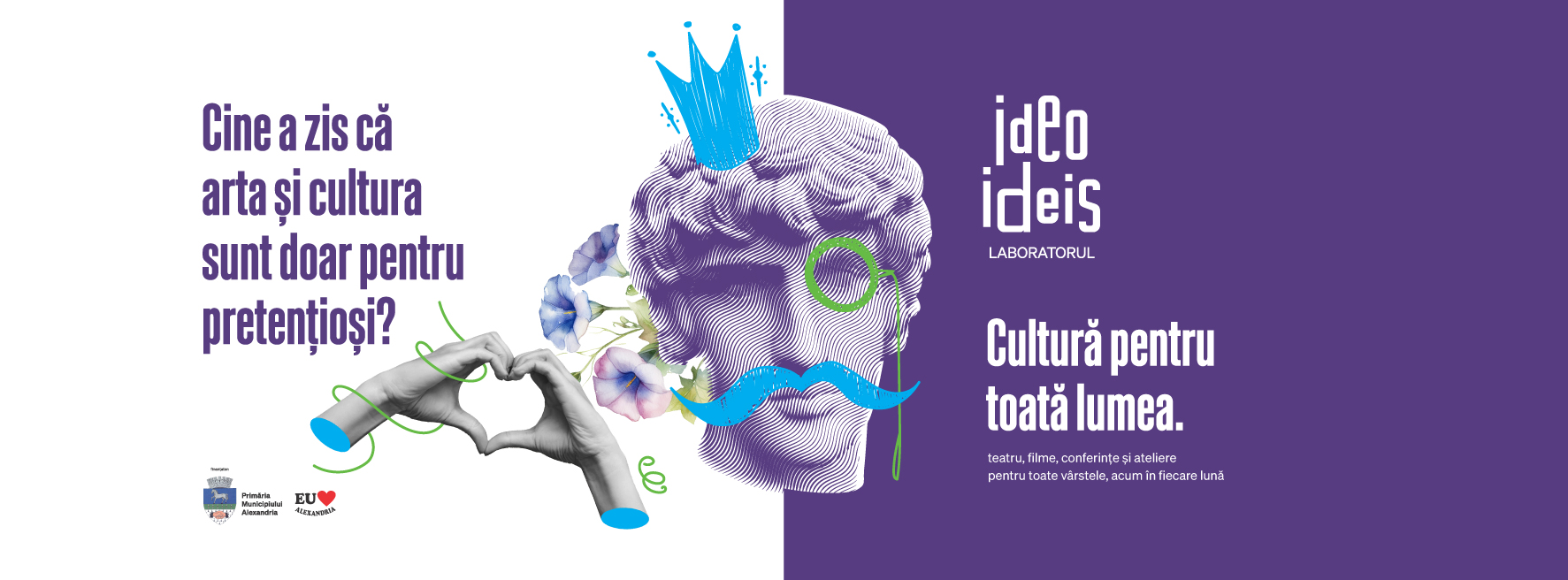 Cine a spus că arta și cultura sunt doar pentru pretențioși? Ideo Ideo Laboratorul continuă să deconstruiască acest mit în 2023, cu o nouă ediție a programului de joacă, învățare și dezvoltare dedicat comunității locale din Alexandria. Seria de evenimente lunare gândite să antreneze curiozitatea publicului de toate vârstele va debuta pe 21 iunie la Centrul Multifuncțional pentru Tineri, cu un spectacol de improvizație oferit de Backstage Boys. Proiectul este realizat cu sprijinul Municipiului Alexandria. Programul primelor spectacole, proiecții și ateliere, dar și detalii complete despre înscrieri, bilete și rezervări, sunt disponibile de astăzi pe www.ideoideis.ro/laboratorul.