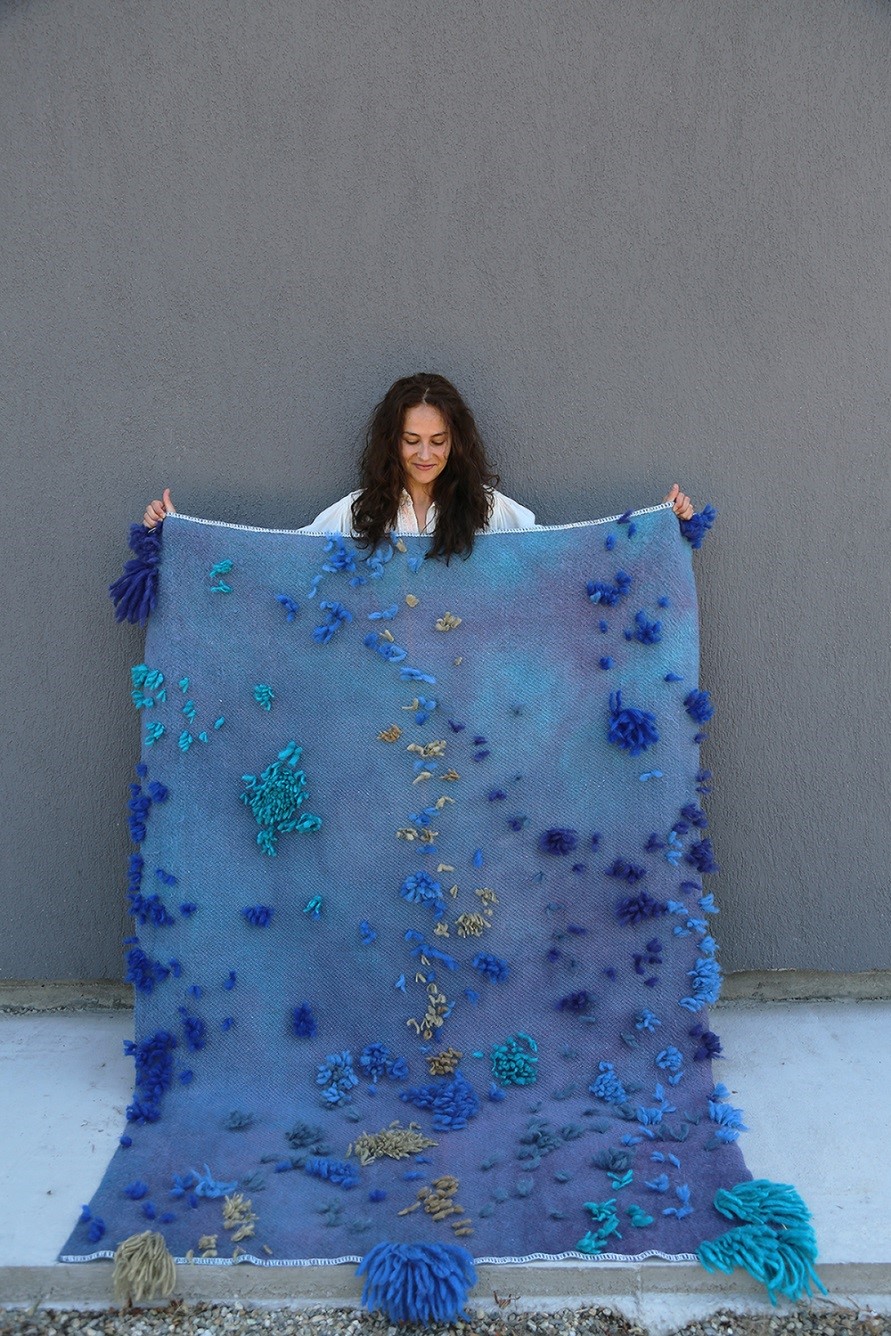Îmi imaginez un interior urban steril în care o piesă din lână, rurală, mistică și sinceră creează un echilibru complementar de impact.