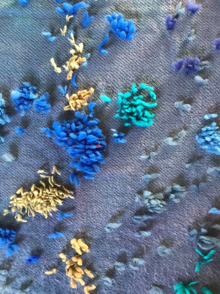 Lucrarea s-a bazat pe crearea unei punți de conexiune între generații. Un obiect al trecutului copilăriei mele a fost readus în prezent, prin crearea unei noi cromatici și texturi. Tehnica de execuție face referire la piesele textile de tapiserie realizate în trecut de bunica mea, dar acum realizate de mine, în prezent.