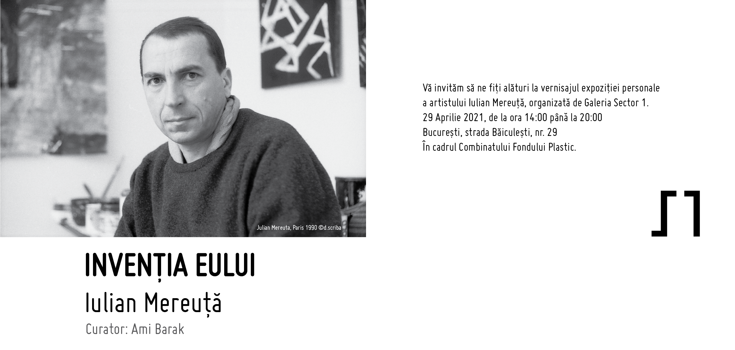 Galeria Sector 1 continuă programul curatorial al anului 2021 cu Invenția eului, o expoziție personală a artistului Iulian Mereuță (1943-2015). Curatorul expoziției, Ami Barak, curator independent și critic de artă care trăiește la Paris, fost președinte al Asociației internaționale a curatorilor de artă contemporană, îl caracterizează pe Mereuță ca fiind „o personalitate de excepție, atestată tardiv”, „poziționat de la început ca gânditor mentor”, „un etern neînțeles și luptător neobosit cu morile de vânt care l-au rănit și l-au handicapat în ceea ce privește recunoașterea și evaluarea”. Mereuță părăsește definitiv România în 1978, atelierul fiindu-i confiscat, lucrările și arhiva, furate, distruse sau dispersate, după ce, cu ceva vreme în urmă, Televiziunea Română îi comandase un scurtmetraj experimental a cărui difuzare este anulată cu o oră înainte de lansare.