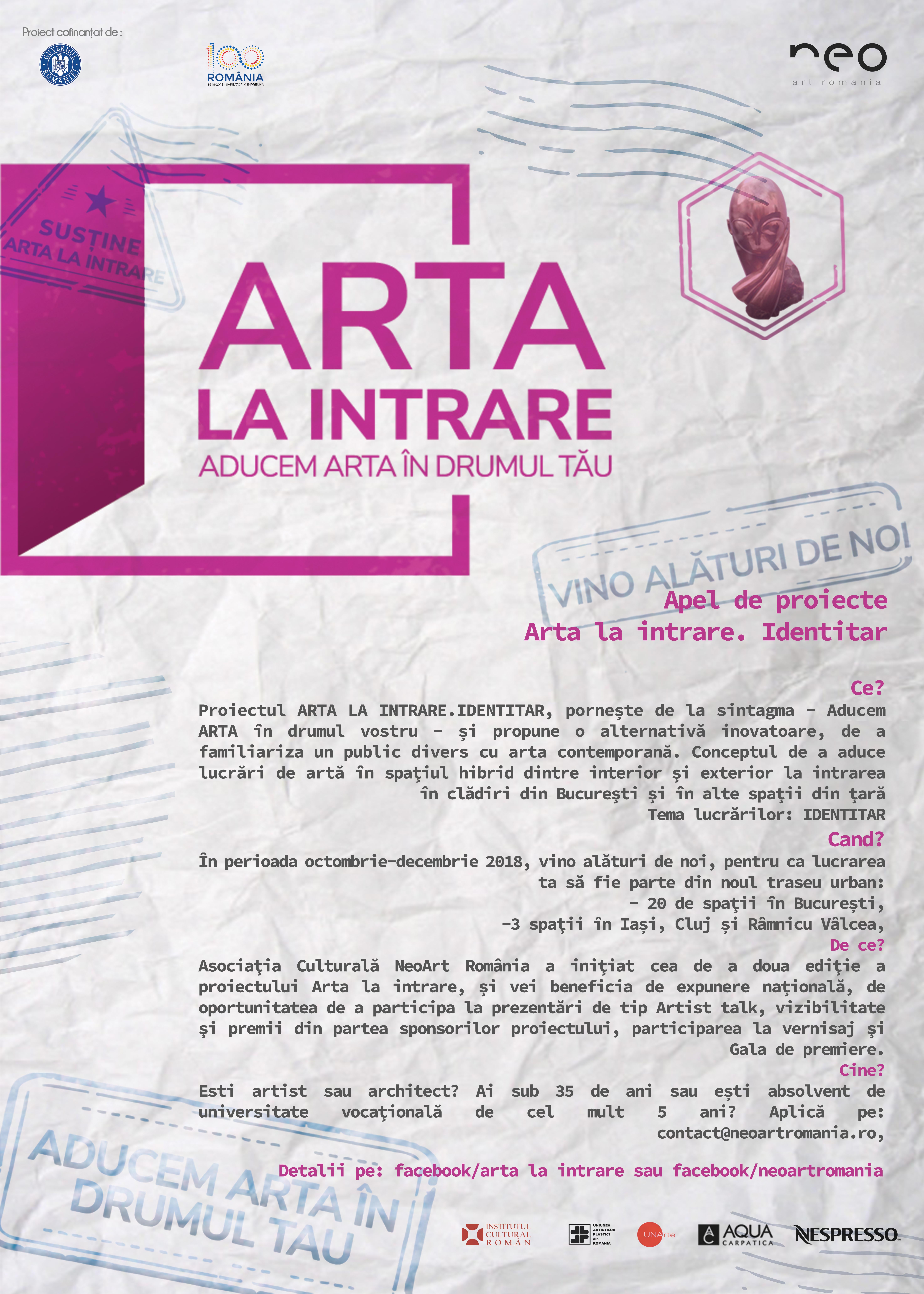Vineri, 26 octombrie 2018, s-a lansat proiectul cultural ARTA LA INTRARE.IDENTITAR. Aflat la a doua ediție, inițiat și coordonat de Asociaţia Culturală NeoArt România, pornește de la sintagma Aducem ARTA în drumul vostru.