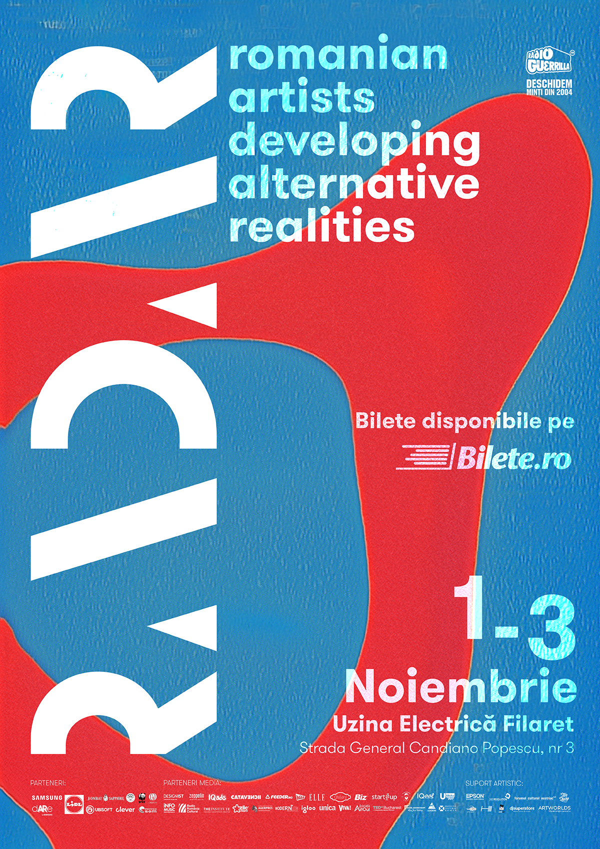 RADAR - Romanian Artists Developing Alternative Realities are loc weekend-ul acesta, între 1 și 3 noiembrie, iar vizitatorii sunt așteptați la Uzina Electrică Filaret pentru o experiență unică art & tech vineri și sâmbătă în intervalul orar 6-11pm, iar duminică între 6 și 10pm. Festivalul este debutul unei platforme care înglobează mișcările creative de new media art sub o manifestare unitară ce prezintă zeci de proiecte care, odată cunoscute de public, se vor transforma într-un curent artistic de sine stătător.