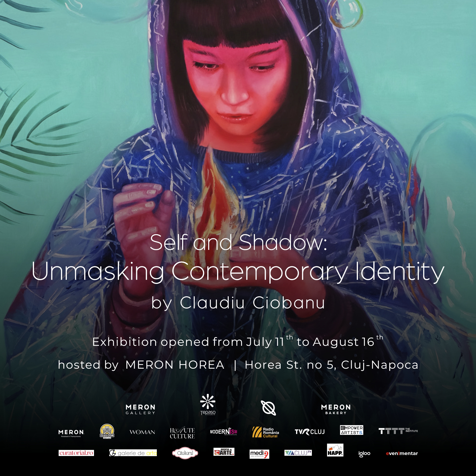 În perioada 11 iulie - 16 august 2024, Meron Gallery, situată în centrul vibrant al orașului Cluj-Napoca, la parterul Palatului Blau Ullmann, un monument istoric construit în 1910 are plăcerea să anunțe deschiderea unei expoziții remarcabile de artă intitulată "Self and Shadow: Unmasking Contemporary Identity", prezentând lucrările artistului iesean Claudiu Ciobanu. Expoziția include 11 lucrări curatoriate de Crina Ciocian din colecția privată a lui Marius Hangan (ex Artmark, casa de licitații). Expoziția "Self and Shadow: Unmasking Contemporary Identity" oferă o experiență artistică unică și introspectivă, în care vizitatorii vor fi invitați să pătrundă într-o lume în care granițele dintre uman și tehnologic se estompează, iar căutarea înțelegerii de sine devine o poveste centrală. Expoziția este un eveniment semnificativ pentru toți cei care caută să exploreze temele actuale stringente, cum ar fi avansul tehnologic și impactul acestuia asupra identității umane.