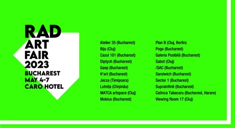 Pentru prima dată în istorie, concurența a fost lăsată deoparte de cele 20 de galerii, care au decis să își unească forțele și creativitatea pentru un scop comun. “RAD este un game-changer, și nu doar pentru cei ce participă la prima ediție, ci pentru întregul ecosistem artistic din România, de la artiști, galerii, curatori, colecționari, instituții. Am decis să construim acest proiect în mod colaborativ pentru că doar în această formulă târgul poate fi cu adevărat relevant și am ales să facem asta acum pentru că este momentul ideal pentru o schimbare de perspectivă”, a declarat și Daniela Pălimariu, director Artistic RAD Art Fair.