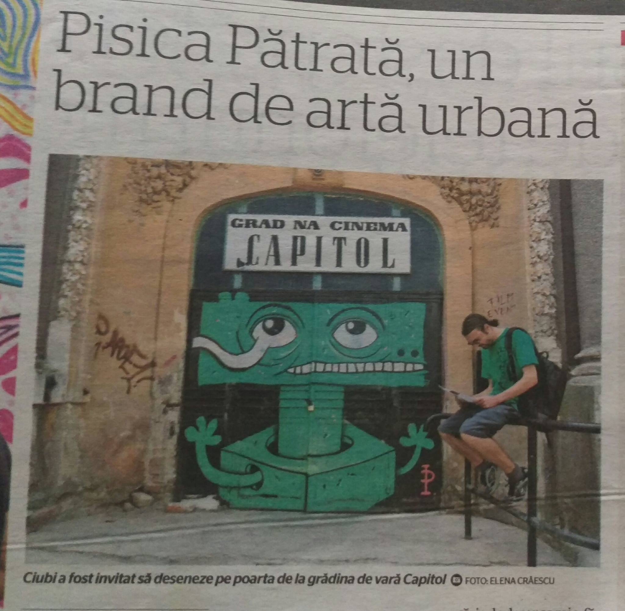 Pentru inaugurarea seriei de evenimente care au avut loc în vara lui 2009 la Teatrul de vară Capitol, l-am invitat pe Pisica Pătrată să deseneze porțile metalice de la intrare. În 2016, Pisica Pătrată a refăcut pictura, personajul devenind un reper și un semnal care atrage atenția asupra ansamblului de clădiri de patrimoniu abandonate și scoase din uz. Și, în aceeași vară a anului 2016, am colaborat cu Lente care, împreună cu Saddo, Pren, Ada Mușat, Reg, Kitră, Cutărică, Livia Fălcaru și Irlo au decorat toată casa și curtea cu câteva desene pe care le puteți admira oricând în zonă.