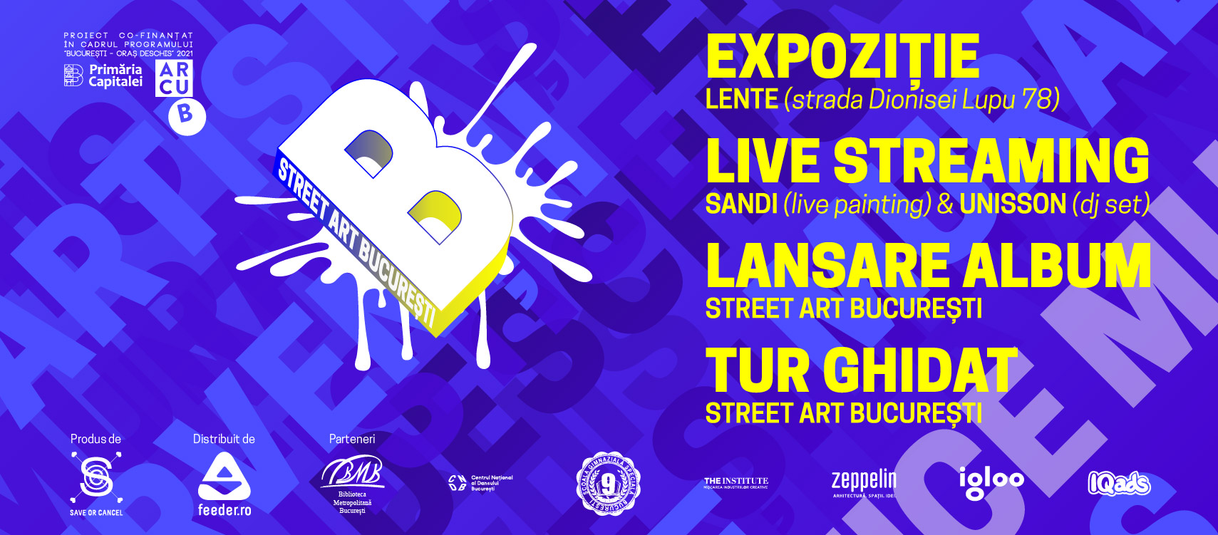 Expoziția Street Art București are loc în la Lente, între 15 – 23 Octombrie 2021, și prezintă o viziune de ansamblu asupra lucrărilor de street art realizate în cadrul proiectului produs de Save or Cancel alături de artiști remarcabili.