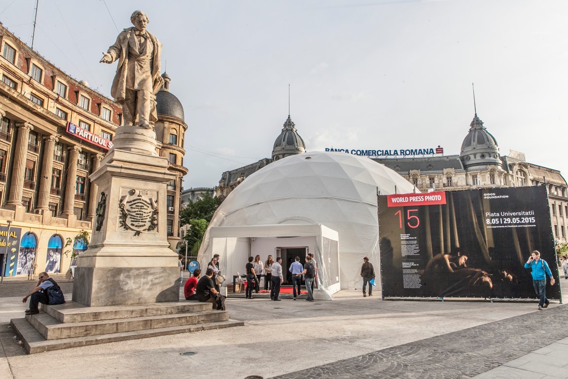 Expoziția World Press Photo, organizată de Fundația Eidos, s-a deschis joi, 7 mai, în Piața Universității din București.