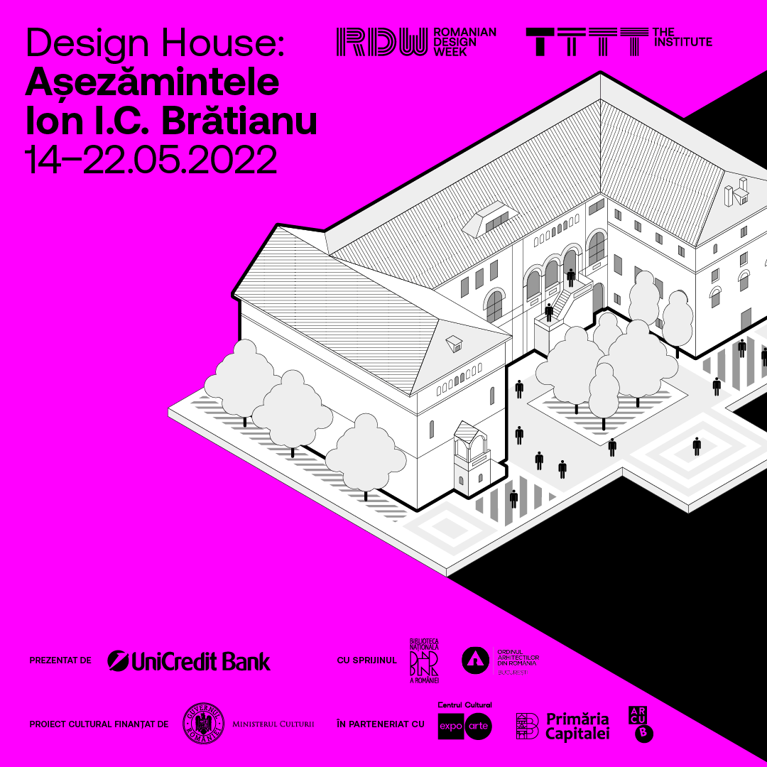 Romanian Design Week, cel mai amplu festival multidisciplinar dedicat industriilor creative, cu sprijinul OAR București și al Bibliotecii Naționale Române și în parteneriat cu ExpoArte, redeschide pentru publicul larg Așezămintele Ion I.C. Brătianu. Între 14 și 22 mai, ansamblul, considerat unul dintre cele mai apreciate exemple de arhitectură neoromânească din București, devine Design House, iar publicul este invitat să descopere un concept inedit: în fiecare zi, spațiul va fi reconfigurat și va găzdui o altă expoziție personală semnată de un designer român, din zona designului de produs, a designului grafic sau a designului vestimentar. Totodată, pe parcursul celor 9 zile de festival, vizitatorii îi vor putea întâlni personal pe designerii care vor fi prezenți în ziua dedicată expoziției lor.