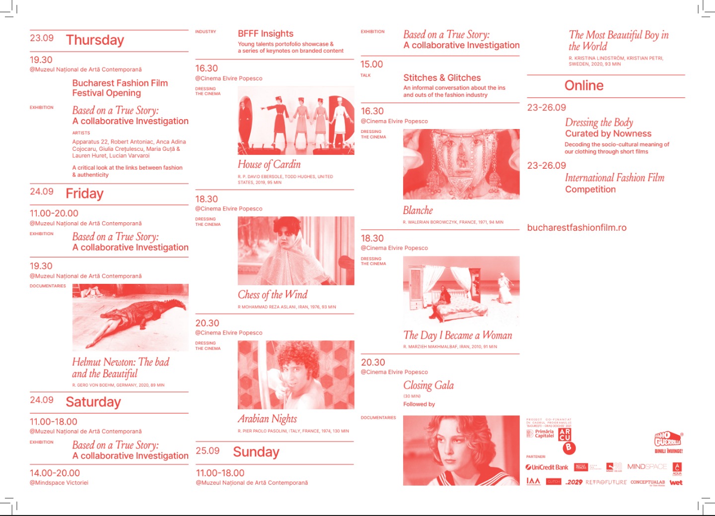 Mai multe detalii despre programul și evenimentele Bucharest Fashion Film Festival se pot găsi pe site-ul https://bucharestfashionfilm.ro/, iar biletele pot fi achiziționate de pe Eventbook.