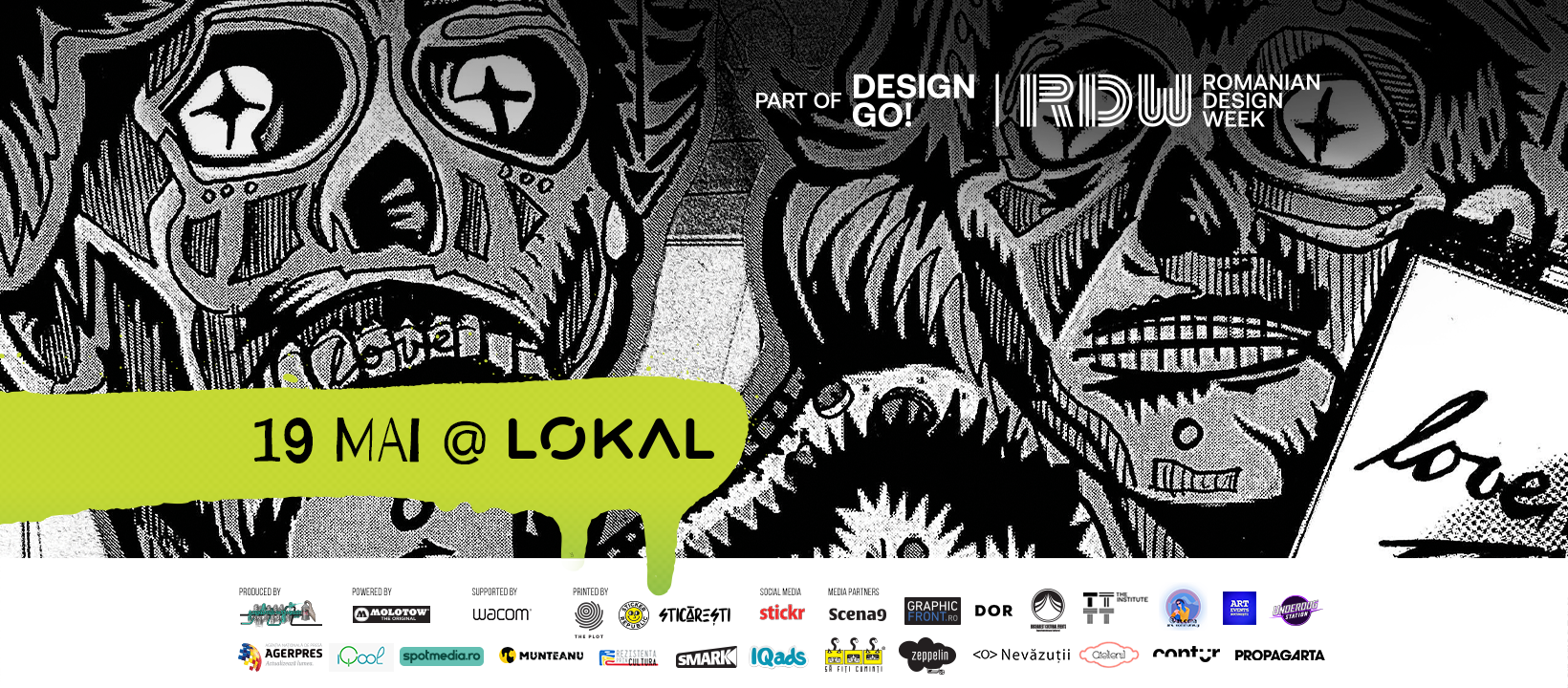 Parteneri media: Agerpres, Art Events București, Asociația Contur, Atoma Art Community, Comunitatea nevăzuții, DesignGo, DoR, Graphic Front, Iqads, Iqool, Munteanu Recomandă, One Night Gallery, Propagarta, Revista Atelierul, Revista Zeppelin, Rezistența prin cultură, Să fiți Cuminți, Scena9, spotmedia.ro, The Institute, Underdog Station,  Zile și Nopți.