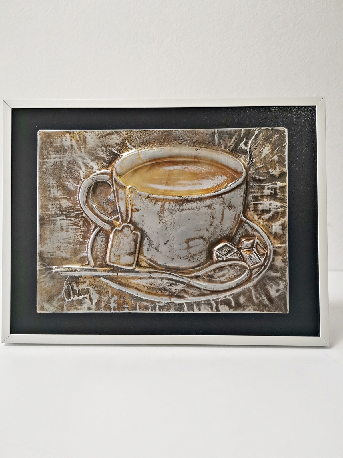 Înscrisă la secţiunea Design Interior – Obiecte decorative, lucrarea lui Valentin Petrişor Nică, un tablou care ilustrează o ceaşcă de ceai, realizat după tehnica metaloplastie, a fost aleasă pentru a primi premiul de originalitate.