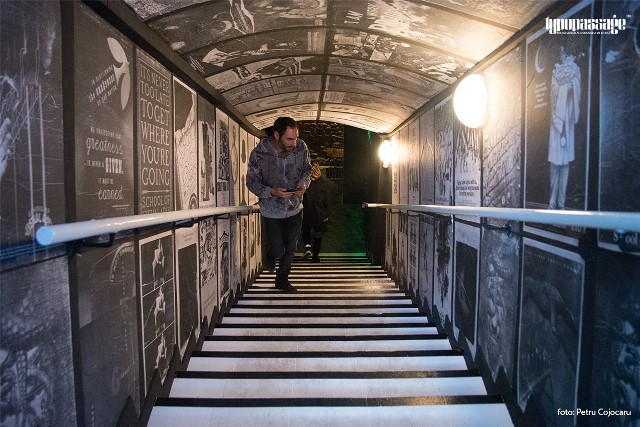 Vizitatorii au fost impresionați de spectaculozitatea lucrărilor expuse și, mai ales, de intervenția spațială inedită: accesul în subsol transformat într-o gură de metrou, o instalație imersivă realizată de Typopassage Tm (concept, instalație paste-up) în colaborare cu Octavian Horvath (sound design).