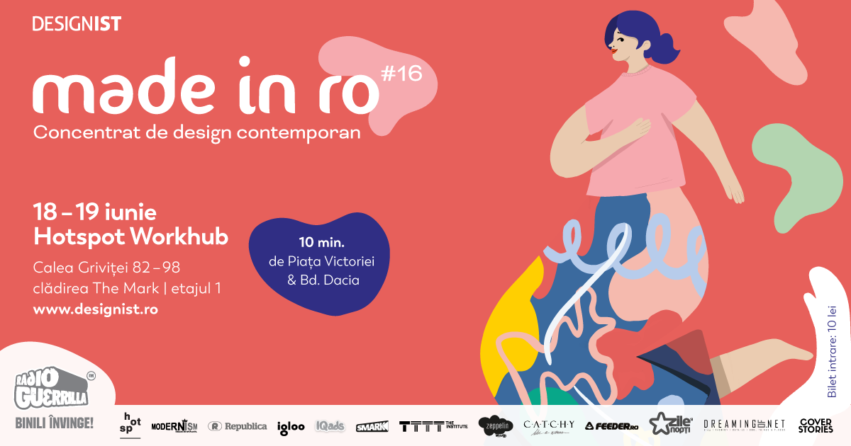 Pe 18 și 19 iunie, are loc o nouă ediție a târgului Made in RO, eveniment creat de platforma editorială Designist.ro, care susține designerii români și industriile creative locale. După doi ani de pauză, comunitatea Made in RO își dă restart într-un nou context de antreprenoriat creativ și într-o nouă locație (Hotspot Workhub - Calea Griviției 82-98, clădirea The Mark, etaj 1), alături de invitați speciali: 10 creatori din Ucraina, care au nevoie de susținerea noastră.