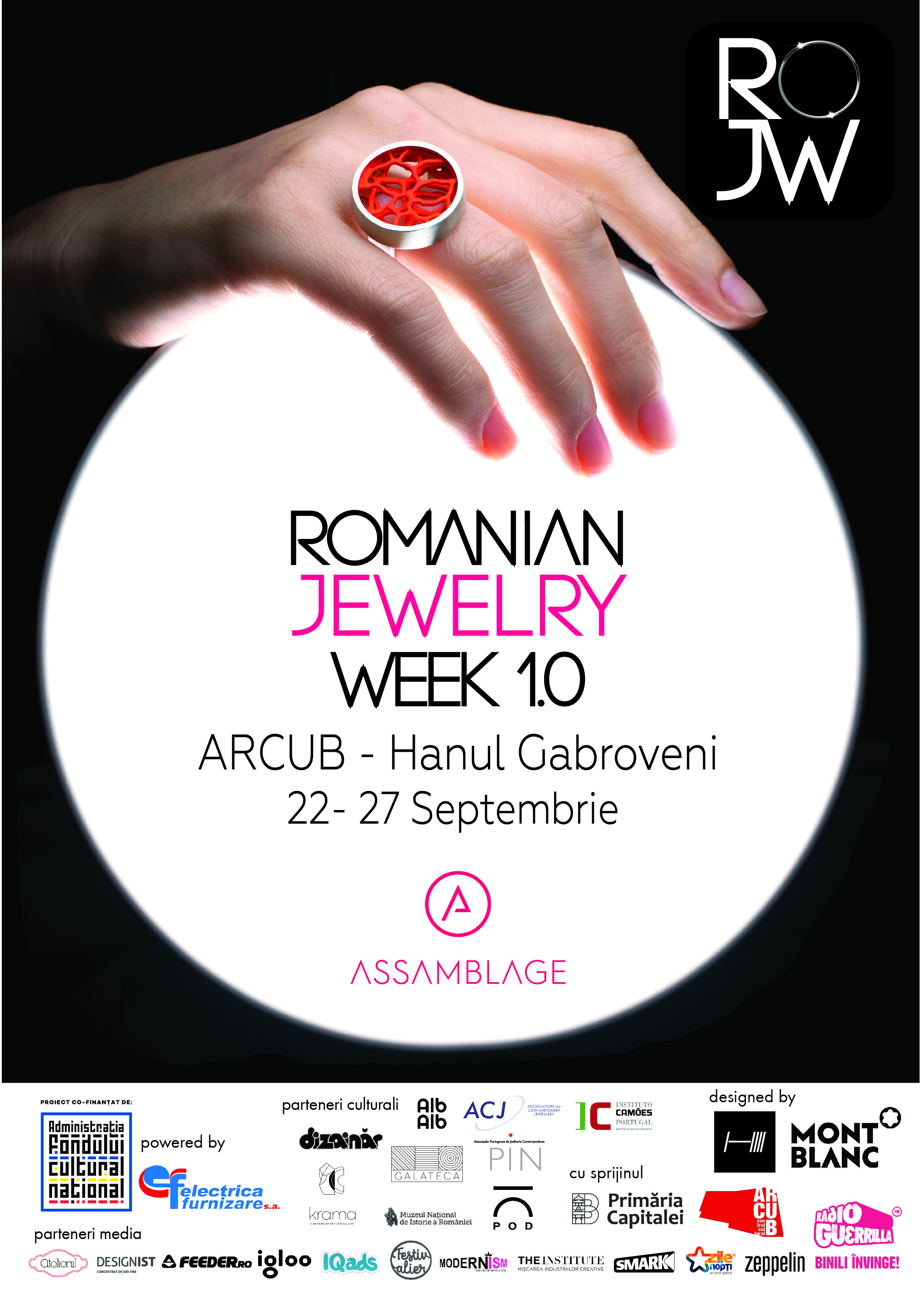Între 22 și 27 septembrie, Assamblage lansează prima ediție ROMANIAN JEWELRY WEEK într-un format nou¬¬ adaptat noilor condiții globale. Bijuteria de autor ca artă și expresie creativă ni se dezvăluie de-a lungul a 6 zile de expoziții, conferințe, lansări de carte, vernisaje și tururi ghidate care vor avea loc în spațiul Centrului Cultural al Municipiului București ARCUB - Hanul Gabroveni și în alte șase locații conexe precum Assamblage, Galateca, Muzeul Național de Istorie a României, Place of Display, AlbAlb, Dizainăr făcând și ele parte din traseul oficial ROJW cu expoziții și activări dedicate.