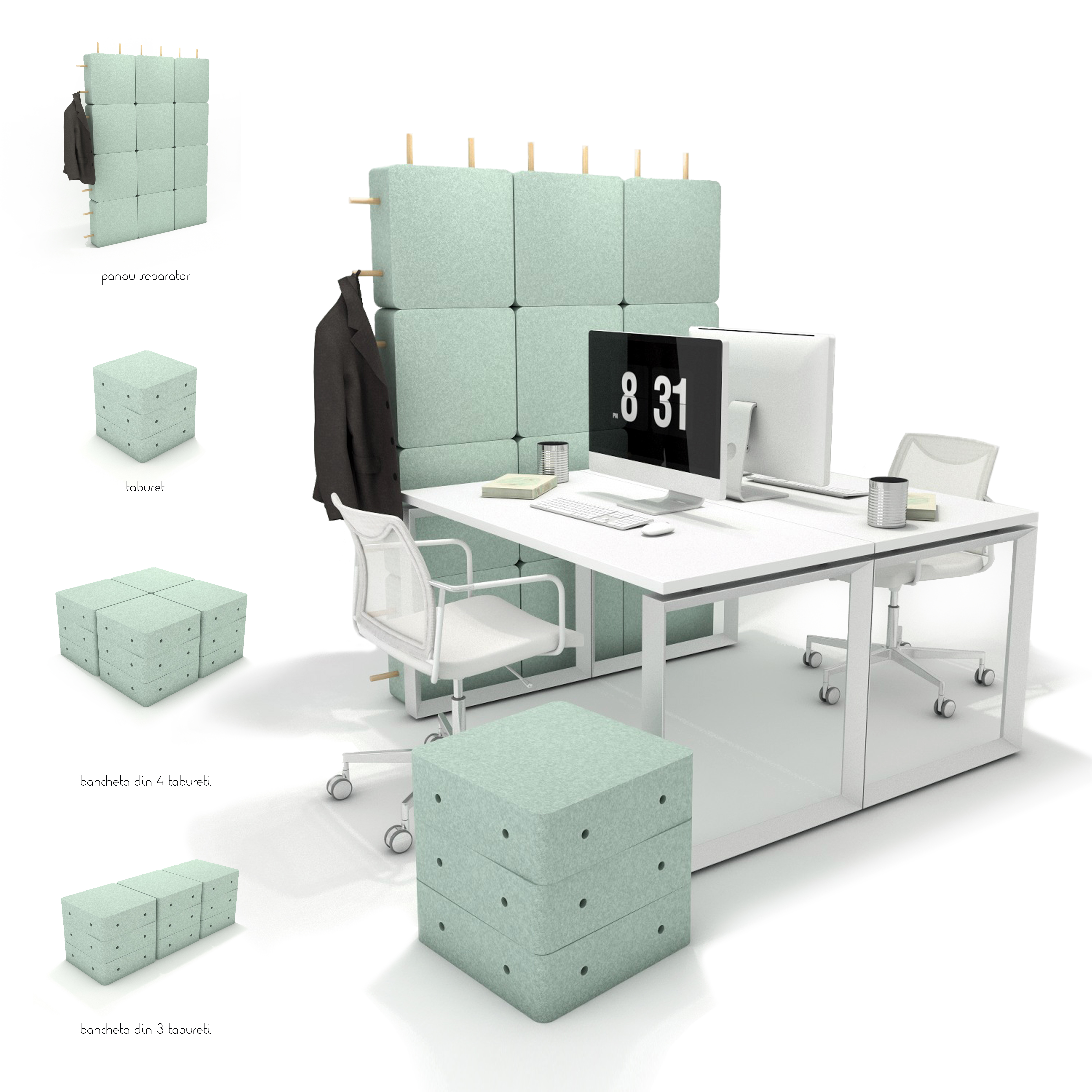 Activitatea fizică este cu atât mai încurajată de posibilitatea schimbării bazei dintr-una de echilibru static spre cea tip leagăn, care invită spre interacțiune atât cu corpul de mobilier în sine, cât și între colegi.” - Corvin Cristian ( Corvin Cristian Studio)