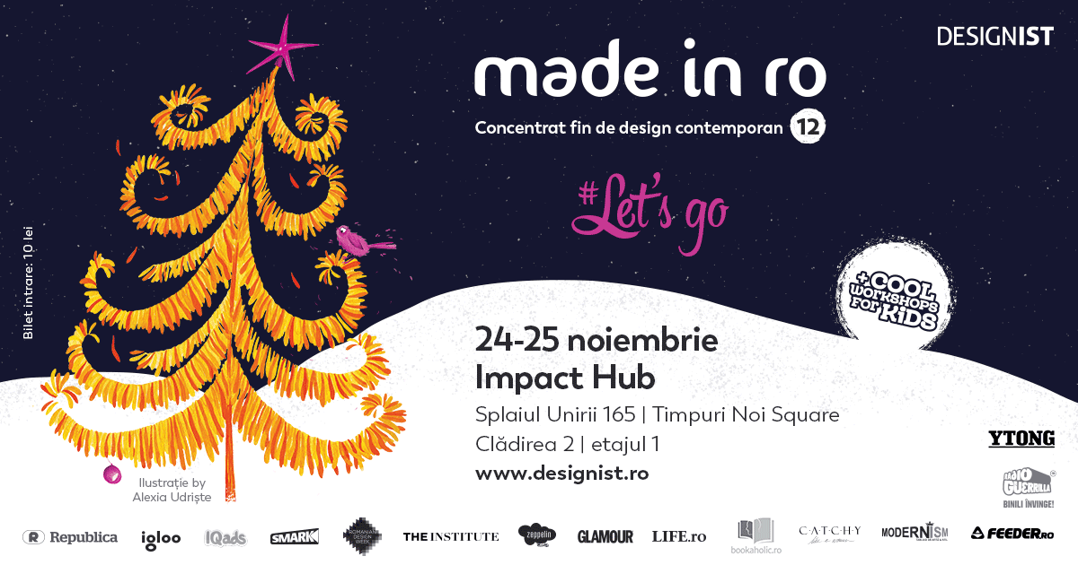 Anul acesta, Design-Crăciunul vine mai devreme, în ajunul lunii a 12-a! Mai precis, pe 24 și 25 noiembrie, când 90 dintre cele mai valoroase proiecte de design românesc, atent selecționate în urma apelului de proiecte, îți dau întâlnire la ediția #12 a târgului Made in RO – Concentrat fin de design contemporan, creat de platforma editorială Designist.ro.