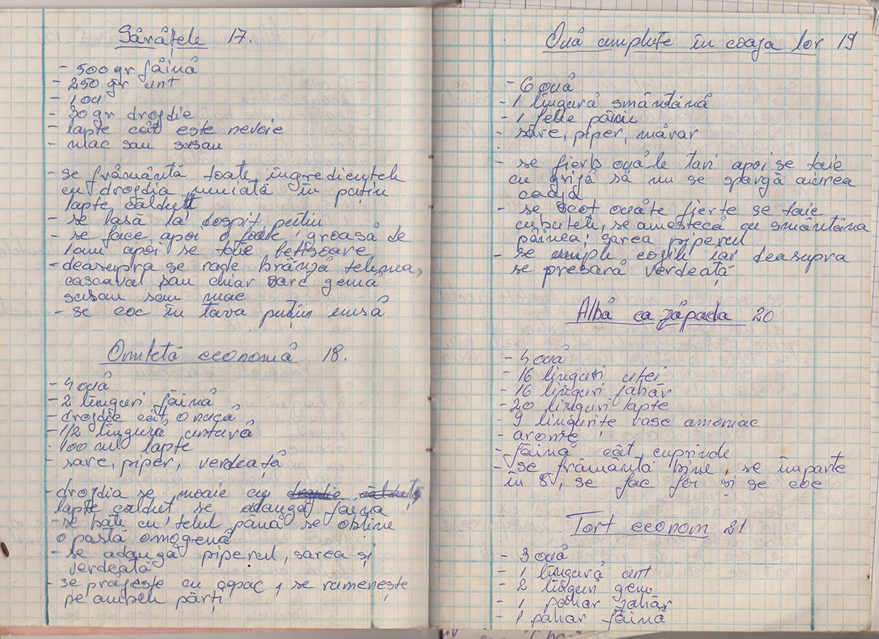 Corina Bucea: Când am început împreună cu Ana proiectu lCaietul de rețete, ceea ce ne-a adus împreună a fost fascinația pentru obiect ca un soi de capsulă a poveștilor despre mâncare, a istoriilor personale și culturale care se adună în jurul mesei. Documentarea caietului ne-a deschis o ușă în casele femeilor cu care am intrat în dialog, spre o lume care trece dincolo de rețete și bucătărie. Intimitatea la care am avut acces în satele în care am lucrat în această vară în Delta Dunării este de neprețuit – vorbind despre rețete, implicit vorbim și despre viața grea din Deltă, despre fragilitatea dar și forța femeilor, despre incredibila diversitate a zonei și implicit a gastronomiei.