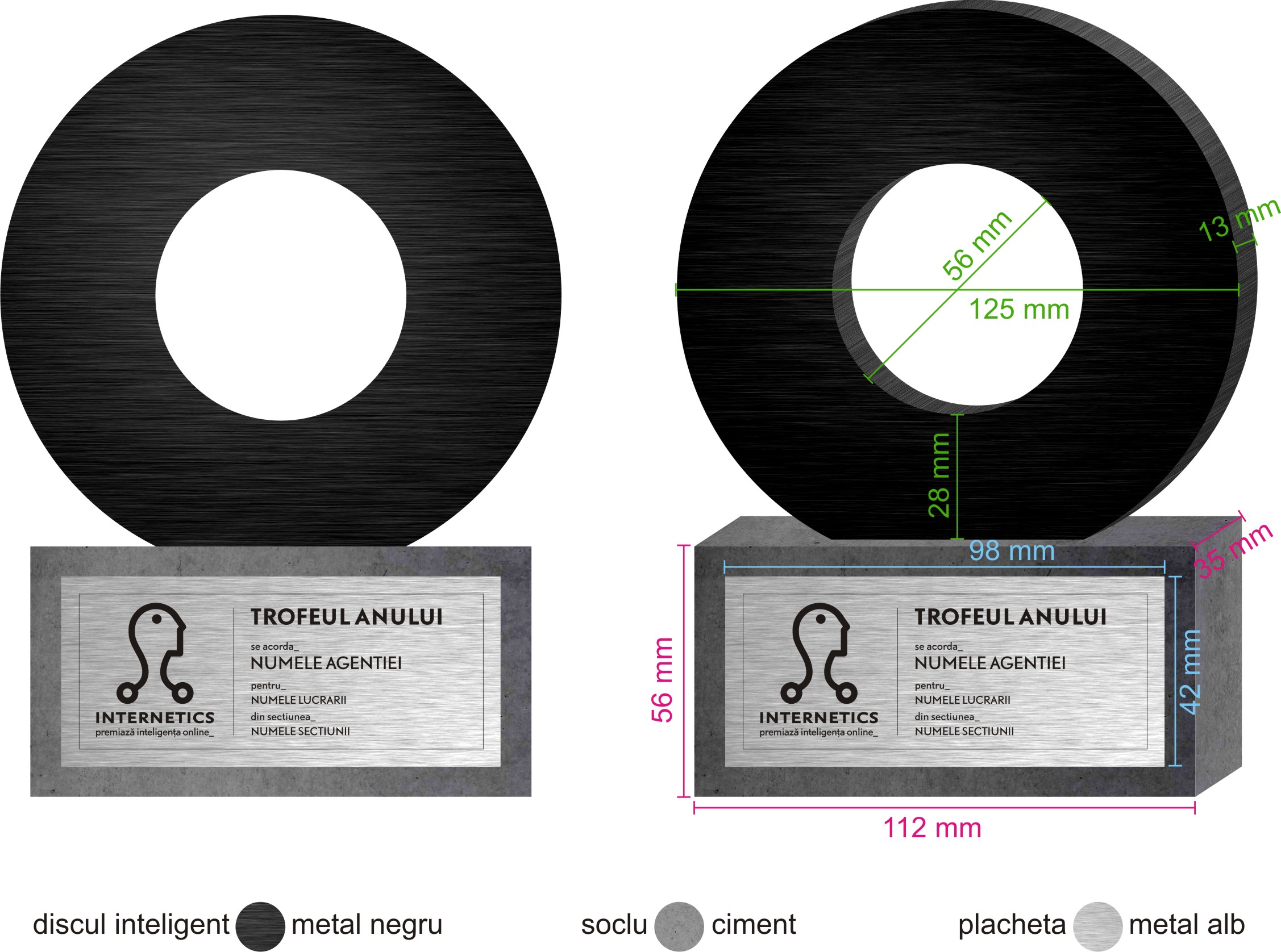 Conceptul trofeului Internetics s-a bazat întotdeauna pe ideea că omul este din ce în ce mai conectat la era digitală. Astfel primul logo și, implicit, trofeul, aveau la bază asemănarea cu elementele componente ale unor microcircuite. Metafora devenea așadar conectarea omului la digital cu ajutorul acestor microcircuite, care împreună formează un tot unitar, o conexiune.