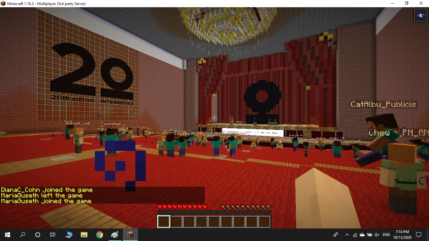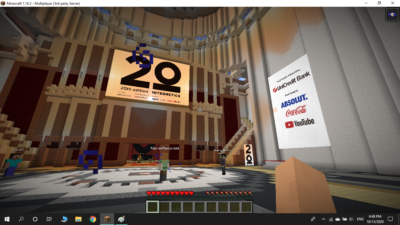 Gala de Premiere a competiției Internetics 2020, un proiect inițiat de The Institute și susținut de UniCredit Bank, s-a desfășurat exclusiv online, în jocul video Minecraft. O replică digitală a Ateneului Român, reconstruit în universul Minecraft cu suportul echipei Nexus Gaming, a reprezentat locul desfășurării evenimentului. Totodată, participanții s-au putut bucura și de un concert al trupei Vița de Vie, care s-a dovedit a fi un real succes.