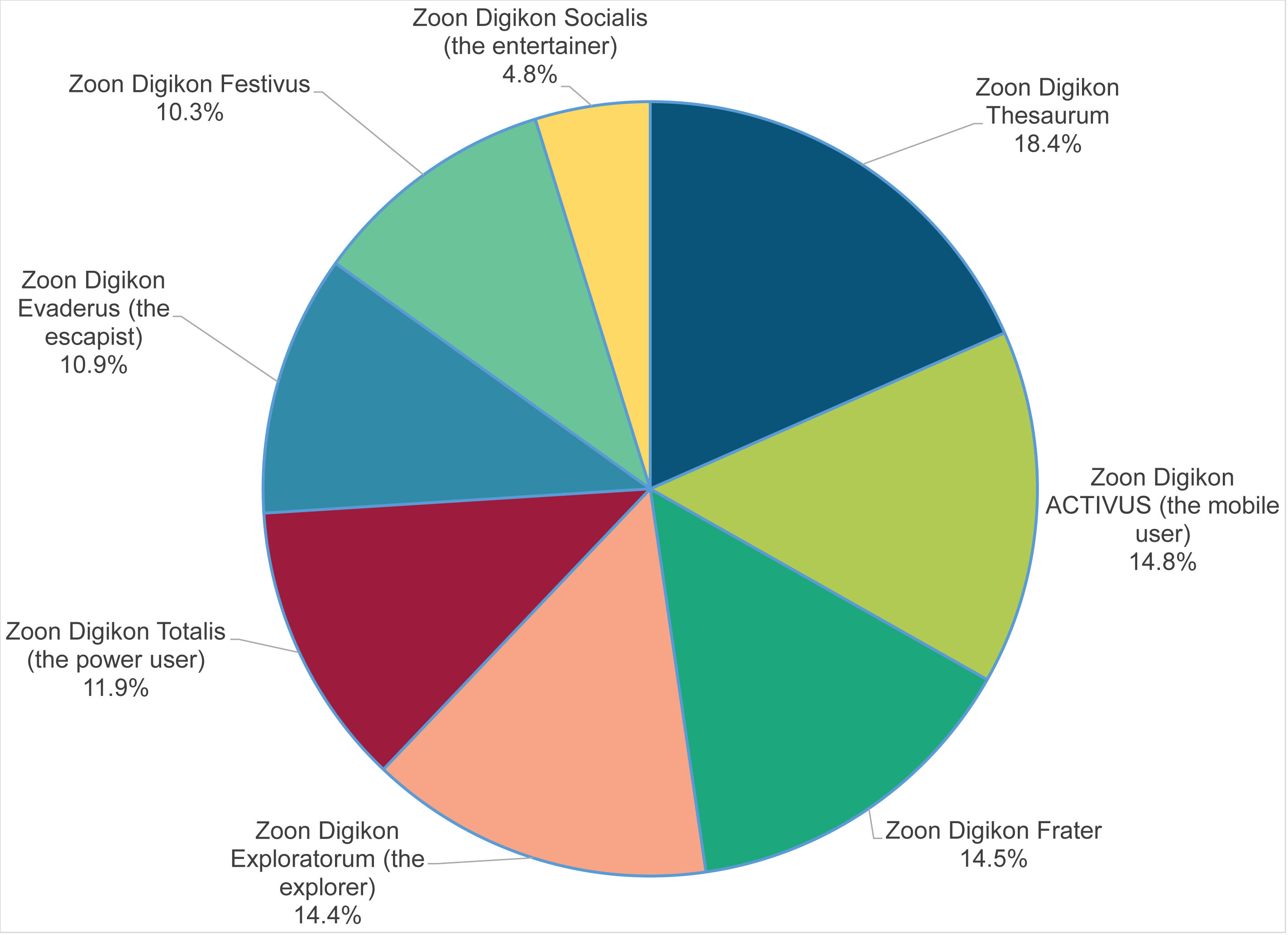 • Zoon Digikon Festivus (10.3%) folosește în principal online-ul în scopuri de divertisment și împărtășește în mod activ conținut cu ceilalți